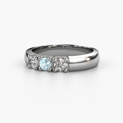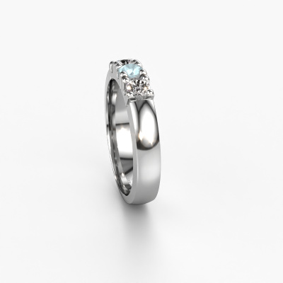 Cette bague style 3 pierres porte le nom de Rianne 3. Ce type de bague s'appelle «Mémoire», car elle est créée avec un profil droit. Cela permet de porter la bague à côté d'autres bagues. Cette bague est en platine et contient un aigue-marine associé à une diamant de 3.4 mm serties sur l'anneau. Comme vous pouvez le constater, avec cette belle mémoire pour femmes en platine, de aigues-marines sont sertis les uns à côté des autres sur la bague. Le sens de l'mémoire est littéralement de 'travailler ensemble'. Et c’est exactement ce que font ces pierres précieuses : ensemble, elles créent un effet spécial supplémentaire sur l'anneau avec un anneau classiques ! Une belle symbolique pour un anneau, non ? Tous les aigues-marines soigneusement sélectionnés sont placés à la main par notre maître orfèvre. Un travail très précis, qui tire le meilleur parti de notre combinaison unique d'artisanat pur et des techniques d'orfèvre les plus modernes. Toutes les pierres précieuses doivent être serties exactement de la même manière pour diffuser parfaitement la lumière. Par conséquent, l'orfèvre gardera cette bague sous la lumière pour voir si les aigues-marines sont placés correctement. Cela demande une main habile et beaucoup de patience, mais le résultat est un véritable chef-d'œuvre. Et c'est ce que nous recherchons ! En combinant les dernières techniques modernes, associées à une fabrication ancienne, nous sommes en mesure de fabriquer nos bagues dans notre propre studio. Chaque bijou est fabriqué sur commande. Ceci est avantageux car nous sommes en mesure de vous proposer un prix que vous ne trouverez nulle part ailleurs. Notre équipe de designers talentueux et passionnés ajoute chaque jour de nouveaux modèles bagues à notre collection en ligne. Notre objectif est de pouvoir vous offrir une grande variété de bijoux. N'hésitez pas à demander un devis si vous avez des souhaits spécifiques pour votre bague. Nous garantissons de vous faire une offre que vous ne pourrez pas refuser. Pour vous faciliter la tâche, vous pouvez facilement nous retourner tout bijou commandé dans les 30 jours suivant la livraison.'