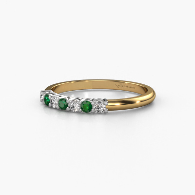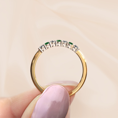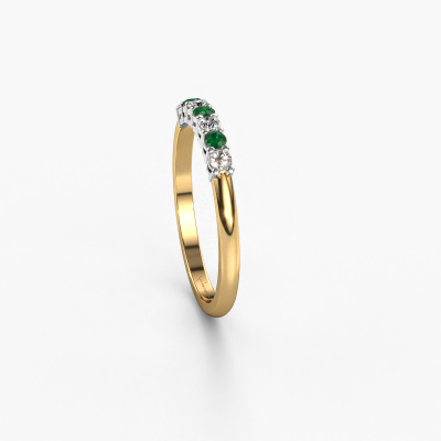 Cette bague style 7 pierres porte le nom de Michelle 7. Ce type de bague s'appelle «Mémoire», car elle est créée avec un profil droit. Cela permet de porter la bague à côté d'autres bagues. Cette bague est en or jaune 14 Carat et contient un emeraude associé à une diamant de 2 mm serties sur l'anneau. Comme vous pouvez le constater, avec cette belle mémoire pour femmes en or jaune, de émeraudes sont sertis les uns à côté des autres sur la bague. Le sens de l'mémoire est littéralement de 'travailler ensemble'. Et c’est exactement ce que font ces pierres précieuses : ensemble, elles créent un effet spécial supplémentaire sur l'anneau avec un anneau classiques ! Une belle symbolique pour un anneau, non ? Tous les émeraudes soigneusement sélectionnés sont placés à la main par notre maître orfèvre. Un travail très précis, qui tire le meilleur parti de notre combinaison unique d'artisanat pur et des techniques d'orfèvre les plus modernes. Toutes les pierres précieuses doivent être serties exactement de la même manière pour diffuser parfaitement la lumière. Par conséquent, l'orfèvre gardera cette bague sous la lumière pour voir si les émeraudes sont placés correctement. Cela demande une main habile et beaucoup de patience, mais le résultat est un véritable chef-d'œuvre. Et c'est ce que nous recherchons ! En combinant les dernières techniques modernes, associées à une fabrication ancienne, nous sommes en mesure de fabriquer nos bagues dans notre propre studio. Chaque bijou est fabriqué sur commande. Ceci est avantageux car nous sommes en mesure de vous proposer un prix que vous ne trouverez nulle part ailleurs.