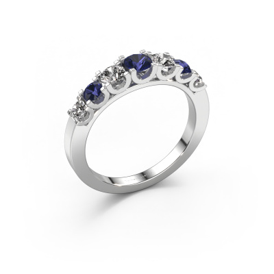 Cette bague style 7 pierres porte le nom de Selina 3. Ce type de bague s'appelle «Mémoire», car elle est créée avec un profil droit. Cela permet de porter la bague à côté d'autres bagues. Cette bague est en platine et contient un saphir associé à une diamant de 3.7 mm serties sur l'anneau. Comme vous pouvez le constater, avec cette belle mémoire pour femmes en platine, de saphir sont sertis les uns à côté des autres sur la bague. Le sens de l'mémoire est littéralement de 'travailler ensemble'. Et c’est exactement ce que font ces pierres précieuses : ensemble, elles créent un effet spécial supplémentaire sur l'anneau avec un anneau modernes ! Une belle symbolique pour un anneau, non ? Tous les saphir soigneusement sélectionnés sont placés à la main par notre maître orfèvre. Un travail très précis, qui tire le meilleur parti de notre combinaison unique d'artisanat pur et des techniques d'orfèvre les plus modernes. Toutes les pierres précieuses doivent être serties exactement de la même manière pour diffuser parfaitement la lumière. Par conséquent, l'orfèvre gardera cette bague sous la lumière pour voir si les saphir sont placés correctement. Cela demande une main habile et beaucoup de patience, mais le résultat est un véritable chef-d'œuvre. Et c'est ce que nous recherchons ! Puisque nous concevons et livrons nos propres bijoux, nous sommes en mesure de vous proposer une bague à un prix que vous ne pourrez pas trouver ailleurs. Une alliance est fabriquée sur commande, ce qui permet d'éviter les excédents de matériel et nous permet de vous proposer une superbe offre de prix. Nous comprenons qu'acheter votre bague en ligne soit un risque, mais nous vous assistons volontiers dans le processus de conception, en tenant compte de votre budget. Notre équipe de designers talentueux et passionnés ajoute chaque jour de nouveaux modèles bagues à notre collection en ligne. Notre objectif est de pouvoir vous offrir une grande variété de bijoux. N'hésitez pas à demander un devis si vous avez des souhaits spécifiques pour votre bague. Nous garantissons de vous faire une offre que vous ne pourrez pas refuser. Pour vous faciliter la tâche, vous pouvez facilement nous retourner tout bijou commandé dans les 30 jours suivant la livraison.'