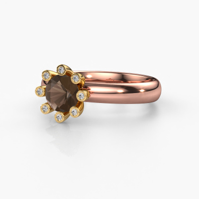 Les bagues superposables sont de magnifiques bagues pour agrémenter votre collection de bagues et la rendre complète. Elles correspondent complètement à la tendance actuelle ! Cette bague forgée en or rose 14 Carat sertie d'un ronds quartz fumé peut donc être combinée avec d'autres bagues superposables ou une bague que vous portez déjà. Une bague superposable est également souvent choisie comme souvenir d'un moment privilégié ou d'une personne de valeur. De cette façon, vous pouvez utiliser plusieurs bagues superposées pour créer des souvenirs, par exemple des étapes dans votre vie, et ainsi raconter votre propre histoire. Cette bague à la mode porte le nom Carola 3. Elle est conçue par nos créateurs de bijoux et est fabriquée à la main dans notre propre atelier. Bien-sûr, vous pouvez l’ajuster parfaitement à votre style !Une fois que vous avez conçu votre bague Carola 3 avec notre configurateur, nos orfèvres se mettent à sa fabrication pour vous. La fabrication se fait de manière traditionnelle avec passion et soin. De plus, nous travaillons avec des matériaux extraits de façon équitable. Si vous voulez changer quelque chose, vous pouvez le faire avec notre configurateur. Si vous avez des souhaits spécifiques pour votre bague Carola 3, mais si vous ne voyez pas une option qui leur corresponde dans le configurateur, veuillez contacter notre équipe de designers expérimentés. La gravure de votre bague ne nous pose aucun problème. Veuillez l'indiquer avec votre commande. Puisque nous concevons et livrons nos propres bijoux, nous sommes en mesure de vous proposer une bague à un prix que vous ne pourrez pas trouver ailleurs. Une alliance est fabriquée sur commande, ce qui permet d'éviter les excédents de matériel et nous permet de vous proposer une superbe offre de prix. Nous comprenons qu'acheter votre bague en ligne soit un risque, mais nous vous assistons volontiers dans le processus de conception, en tenant compte de votre budget.Pour vous faciliter la tâche, vous pouvez facilement nous retourner tout bijou commandé dans les 30 jours suivant la livraison.Consultez notre foire aux questions. Si vous avez des questions et que vous n'en voyez pas la réponse, veuillez contacter l'équipe par DiamondsByMe. Nous serons heureux de vous aider !