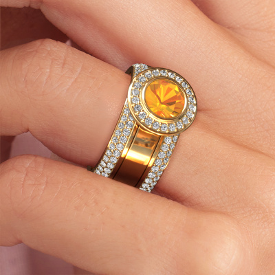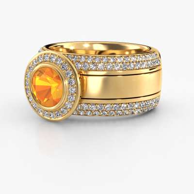 Cette bague sertis pavés sertie de citrines a un caractère sertis pavés en raison de sa belle finition. Une bague sertis pavés qui s’adapte parfaitement à une femmes sertis pavés et à son goût propre. Cette bague forgée en or jaune porte