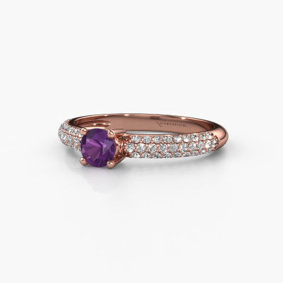 Cette bague Pavé pour femmes porte le nom Marjan. Cette bague est forgée en or rose 14 Carat et est sertie d'un améthystes de 4.2 mm. Dans cette bague forgée en or rose, de magnifiques améthystes ont été sertis, comme une rangée infinie faite de améthystes. Les pierres précieuses sont soigneusement choisies et serties avec la plus grande précision par notre orfèvre. Parce que ce n'est que lorsque les améthystes sont sertis les uns à côté des autres que la bague se mettra à briller. Toujours et encore, au cours du processus traditionnel de forgeage et de polissage, l'orfèvre maintient votre bague à la lumière jusqu'à ce qu'il détienne enfin la bague parfaite pour femmes. Composée par vous et spécialement créé pour vous !Nos orfèvres fabriquent votre bague sur mesure, à votre goût et avec beaucoup de passion et de soin. Le or rose bague comme indiqué ici peut être ajusté à votre guise avec l'outil de configuration. Si vous avez des idées que vous ne pouvez pas appliquer avec l'outil de configuration, vous pouvez toujours les partager à nos créateurs de bijoux. Vous pouvez bien sûr toujours nous poser des questions.En combinant les dernières techniques modernes, associées à une fabrication ancienne, nous sommes en mesure de fabriquer nos bagues dans notre propre studio. Chaque bijou est fabriqué sur commande. Ceci est avantageux car nous sommes en mesure de vous proposer un prix que vous ne trouverez nulle part ailleurs.Pour vous faciliter la tâche, vous pouvez facilement nous retourner tout bijou commandé dans les 30 jours suivant la livraison.. Si vous avez encore des questions sur l'assemblage de votre bague de bon goût Marjan personnelle, l'équipe DiamondsByMe est prête à vous aider !