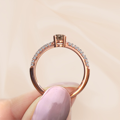 Cette bague Pavé pour femmes porte le nom Marjan. Cette bague est forgée en or rose 14 Carat et est sertie d'un diamants bruns de 0.662 crt. Dans cette bague forgée en or rose, de magnifiques diamants bruns ont été sertis, comme une rangée infinie faite de diamants bruns. Les pierres précieuses sont soigneusement choisies et serties avec la plus grande précision par notre orfèvre. Parce que ce n'est que lorsque les diamants bruns sont sertis les uns à côté des autres que la bague se mettra à briller. Toujours et encore, au cours du processus traditionnel de forgeage et de polissage, l'orfèvre maintient votre bague à la lumière jusqu'à ce qu'il détienne enfin la bague parfaite pour femmes. Composée par vous et spécialement créé pour vous !Nos orfèvres fabriquent votre bague sur mesure, à votre goût et avec beaucoup de passion et de soin. Le or rose bague comme indiqué ici peut être ajusté à votre guise avec l'outil de configuration. Si vous avez des idées que vous ne pouvez pas appliquer avec l'outil de configuration, vous pouvez toujours les partager à nos créateurs de bijoux. Vous pouvez bien sûr toujours nous poser des questions.En combinant les dernières techniques modernes, associées à une fabrication ancienne, nous sommes en mesure de fabriquer nos bagues dans notre propre studio. Chaque bijou est fabriqué sur commande. Ceci est avantageux car nous sommes en mesure de vous proposer un prix que vous ne trouverez nulle part ailleurs.Pour vous faciliter la tâche, vous pouvez facilement nous retourner tout bijou commandé dans les 30 jours suivant la livraison.. Si vous avez encore des questions sur l'assemblage de votre bague de bon goût Marjan personnelle, l'équipe DiamondsByMe est prête à vous aider !