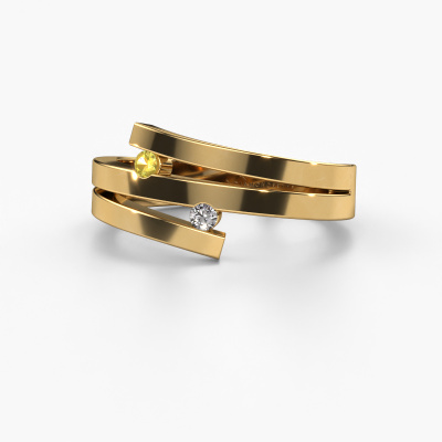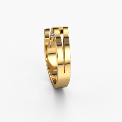 Roxane est le nom que nous avons donné à cette bague. Cette bague forgée en or jaune 14 Carat est sertie d'un saphir jaune. Vous recherchez une Bague forgée en or jaune unique et avec un look modernes ? Voici donc une belle bague que vous pouvez aussi ajuster à votre goût. Parfait donc pour une femmes contemporaine et modernes ! Un magnifique saphir jaune est serti dans cette bague élégants. Celui-ci est sélectionné avec soin, car seules les plus belles pierres précieuses de votre bague peuvent la faire briller. Notre orfèvre fabrique votre bague dans notre propre atelier et place le saphir jaune dans l'anneau avec une précision extrême. Donc, il est travaillé et poli jusqu'à ce que le résultat soit visible : la bague parfaite ! En combinant les dernières techniques modernes, associées à une fabrication ancienne, nous sommes en mesure de fabriquer nos bagues dans notre propre studio. Chaque bijou est fabriqué sur commande. Ceci est avantageux car nous sommes en mesure de vous proposer un prix que vous ne trouverez nulle part ailleurs.Nos designers talentueux ajoutent quotidiennement de nouveaux modèles à notre collection en ligne. Ensemble, ils créent une collection variée des plus beaux bijoux. Si vous préférez créer des bagues selon votre propre conception, n'hésitez pas à demander un devis. Nous vous ferons une offre incroyable, basée sur la qualité et le prix.Pour vous faciliter la tâche, vous pouvez facilement nous retourner tout bijou commandé dans les 30 jours suivant la livraison.Nous sommes curieux de savoir comment vous allez personnaliser votre bague Roxane. Si quelque chose ne vous semble pas tout à fait clair, vous pouvez toujours nous contacter. Nous serons heureux de vous aider !