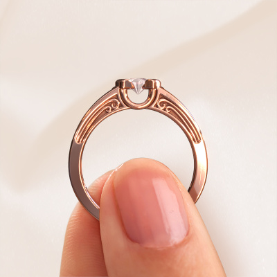 Votre attention est-elle toujours attirée par les articles vintage ? Vous pouvez donc être sûre que cette bague forgée en or rose vous ira bien ! C'est un nouveau modèle, basé sur des motifs vintage. Un peu de rêve, un beau design ! Surtout si vous l'ajustez encore plus à votre goût. De magnifiques champagne morganite sont utilisés dans cette bague élégants. Comme vous pouvez le constater, vous pouvez choisir une pierre précieuse qui convient à votre style. Chaque pierre précieuse est soigneusement sélectionnée par nos commerçants dans le monde entier. Notre orfèvre ne veut utiliser que les plus belles pierres précieuses sur un bijou. C'est la couronne de son travail ! Une fois que vous avez conçu votre bague Elena avec notre configurateur, nos orfèvres se mettent à sa fabrication pour vous. La fabrication se fait de manière traditionnelle avec passion et soin. De plus, nous travaillons avec des matériaux extraits de façon équitable. Si vous voulez changer quelque chose, vous pouvez le faire avec notre configurateur. Si vous avez des souhaits spécifiques pour votre bague Elena, mais si vous ne voyez pas une option qui leur corresponde dans le configurateur, veuillez contacter notre équipe de designers expérimentés.Devez-vous respecter un certain budget ? N'hésitez pas à nous contacter, nous serons heureux de vous conseiller sur toutes les possibilités. Dans tous les cas, nous offrons toutes les bagues à un prix que vous ne trouverez nulle part ailleurs, car nous ne fabriquerons la bague uniquement lorsque vous la commanderez. Cela nous permet de vous donner la garantie du meilleur prix.Pour vous faciliter la tâche, vous pouvez facilement nous retourner tout bijou commandé dans les 30 jours suivant la livraison.Avez-vous des questions sur la bague élégants anneau Elena ? Jetez un coup d'œil à notre foire aux questions. Bien sûr, vous pouvez également contacter l'équipe par DiamondsByMe. Nous sommes toujours heureux de vous conseiller !