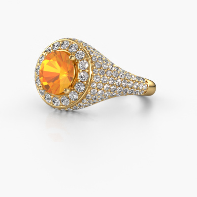 Cette bague Pavé pour femmes porte le nom Dayle. Cette bague est forgée en or jaune 14 Carat et est sertie d'un citrines de 7 mm. Dans cette bague forgée en or jaune, de magnifiques citrines ont été sertis, comme une rangée infinie faite de citrines. Les pierres précieuses sont soigneusement choisies et serties avec la plus grande précision par notre orfèvre. Parce que ce n'est que lorsque les citrines sont sertis les uns à côté des autres que la bague se mettra à briller. Toujours et encore, au cours du processus traditionnel de forgeage et de polissage, l'orfèvre maintient votre bague à la lumière jusqu'à ce qu'il détienne enfin la bague parfaite pour femmes. Composée par vous et spécialement créé pour vous !La meilleure partie concernant ces bague gracieuses est que vous pouvez les personnaliser à votre guise. Votre style, votre choix, vos bague. De plus, vos bague exclusives en or jaune seront fabriquées à la main avec des matériaux honnêtes!Devez-vous respecter un certain budget ? N'hésitez pas à nous contacter, nous serons heureux de vous conseiller sur toutes les possibilités. Dans tous les cas, nous offrons toutes les bagues à un prix que vous ne trouverez nulle part ailleurs, car nous ne fabriquerons la bague uniquement lorsque vous la commanderez. Cela nous permet de vous donner la garantie du meilleur prix.Pour vous faciliter la tâche, vous pouvez facilement nous retourner tout bijou commandé dans les 30 jours suivant la livraison.. Si vous avez encore des questions sur l'assemblage de votre bague élégants Dayle personnelle, l'équipe DiamondsByMe est prête à vous aider !
