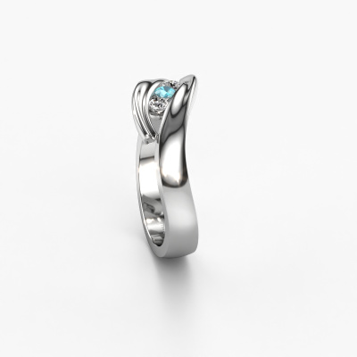 Erin est le nom que nous avons donné à cette bague. Cette bague forgée en or blanc 14 Carat est sertie d'un topaze bleue. Vous recherchez une Bague forgée en or blanc unique et avec un look fantaisie ? Voici donc une belle bague que vous pouvez aussi ajuster à votre goût. Parfait donc pour une femmes contemporaine et fantaisie ! Un magnifique topaze bleue est serti dans cette bague élégants. Celui-ci est sélectionné avec soin, car seules les plus belles pierres précieuses de votre bague peuvent la faire briller. Notre orfèvre fabrique votre bague dans notre propre atelier et place le topaze bleue dans l'anneau avec une précision extrême. Donc, il est travaillé et poli jusqu'à ce que le résultat soit visible : la bague parfaite ! Devez-vous respecter un certain budget ? N'hésitez pas à nous contacter, nous serons heureux de vous conseiller sur toutes les possibilités. Dans tous les cas, nous offrons toutes les bagues à un prix que vous ne trouverez nulle part ailleurs, car nous ne fabriquerons la bague uniquement lorsque vous la commanderez. Cela nous permet de vous donner la garantie du meilleur prix.De nouveaux modèles de bijoux sont ajoutés à notre collection en ligne quotidiennement. Notre équipe de designers passionnés s'efforce de créer des designs extraordinaires et variés. Avez-vous vu une bague qui vous plait ? N'hésitez pas à nous contacter. Grâce à un bon rapport qualité / prix, nous vous ferons une offre que vous ne pourrez pas refuser !Pour vous faciliter la tâche, vous pouvez facilement nous retourner tout bijou commandé dans les 30 jours suivant la livraison.Nous sommes curieux de savoir comment vous allez personnaliser votre bague Erin. Si quelque chose ne vous semble pas tout à fait clair, vous pouvez toujours nous contacter. Nous serons heureux de vous aider !