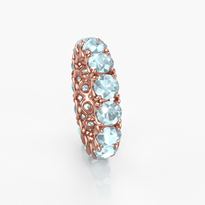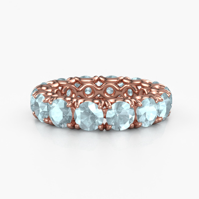 Cette bague porte le nom Estee 4.7 et le type de bague s'appelle une bague éternité. Par conséquent, toutes les pierres précieuses sont serties autour de l'anneau de la bague. Cette bague forgée en or rose 14 Carat a tout autour des petits aigues-marines de 4.7 mm. Cette bague éternité pour femmes forgée en or rose est une jolie bague qui rendra votre demande en mariage très spéciale. Les aigues-marines brillants sont tous d'identique et sont sertis autour de la bague. Tous les aigues-marines sont soigneusement sélectionnés, précisément parce qu'ils doivent être aussi identiques que possible pour créer le meilleur résultat possible sur cette bague. Ce sont des produits de la nature, de sorte qu'il existe encore des différences minimes entre chaque pierre. Mais comme tous nos aigues-marines sont placés à la main avec beaucoup de précision par notre orfèvre, l'effet éternité peut être renforcé. Cela demande beaucoup de patience et une main habile, mais fabriquer la bague parfaite pour femmes est une passion qui anime nos orfèvres. Le résultat est une bague magnifique dans laquelle la rangée de aigues-marines semble continuer sans fin. Le symbole de votre amour infini pour elle ! Magnifique n'est-ce pas ? En utilisant nos techniques modernes, nous sommes en mesure de concevoir et de personnaliser les bijoux de la plus haute qualité avec le plus grand soin pour vous. Nos bagues ont toujours un prix inférieur de 30% à celles des autres bijoutiers. Nous fabriquons des bagues à la commande afin de ne pas avoir à garder un stock important. Si vous avez un certain budget, nous serons ravis de vous conseiller tout en le respectant.