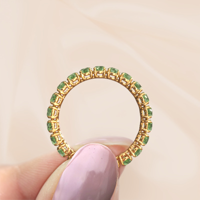 Cette bague porte le nom Vivienne 2.7 et le type de bague s'appelle une bague éternité. Par conséquent, toutes les pierres précieuses sont serties autour de l'anneau de la bague. Cette bague forgée en or jaune 14 Carat a tout autour des petits vert tourmaline de 2.7 mm. Les vert tourmaline brillants sont tous d'identique et sont sertis dans l'anneau autour de la bague. Tous les vert tourmaline sont soigneusement sélectionnés, précisément parce qu'ils doivent être aussi identiques que possible pour créer le meilleur résultat possible sur cette bague. Notre orfèvre place tous les vert tourmaline très précisément à la main, ce qui permet de renforcer l'effet éternité de la bague. La passion est ce qui anime nos orfèvres : créer la bague parfaite. Voici la beauté de notre métier ! Le résultat est une belle bague forgée en or jaune classiques dans laquelle la rangée de vert tourmaline semble continuer sans fin. Le symbole parfait pour votre amour infini pour elle ! Voici quelque chose de particulier ! En combinant les dernières techniques modernes, associées à une fabrication ancienne, nous sommes en mesure de fabriquer nos bagues dans notre propre studio. Chaque bijou est fabriqué sur commande. Ceci est avantageux car nous sommes en mesure de vous proposer un prix que vous ne trouverez nulle part ailleurs.Nos designers talentueux ajoutent quotidiennement de nouveaux modèles à notre collection en ligne. Ensemble, ils créent une collection variée des plus beaux bijoux. Si vous préférez créer des bagues selon votre propre conception, n'hésitez pas à demander un devis. Nous vous ferons une offre incroyable, basée sur la qualité et le prix.Pour vous faciliter la tâche, vous pouvez facilement nous retourner tout bijou commandé dans les 30 jours suivant la livraison.