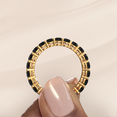 Cette bague superposable porte le nom Michelle full 3.0 et le type de bague s'appelle une bague éternité. Par conséquent, toutes les pierres précieuses sont serties autour de l'anneau de la bague. Cette bague superposable forgée en or jaune 14 Carat a tout autour des petits diamants noirs de 2.640 crt. Les diamants noirs brillants sont tous d'identique et sont sertis dans l'anneau autour de la bague superposable. Tous les diamants noirs sont soigneusement sélectionnés, précisément parce qu'ils doivent être aussi identiques que possible pour créer le meilleur résultat possible sur cette bague. Notre orfèvre place tous les diamants noirs très précisément à la main, ce qui permet de renforcer l'effet éternité de la bague. La passion est ce qui anime nos orfèvres : créer la bague parfaite. Voici la beauté de notre métier ! Le résultat est une belle bague forgée en or jaune classiques dans laquelle la rangée de diamants noirs semble continuer sans fin. Le symbole parfait pour votre amour infini pour elle ! Voici quelque chose de particulier ! Puisque nous concevons et livrons nos propres bijoux, nous sommes en mesure de vous proposer une bague à un prix que vous ne pourrez pas trouver ailleurs. Une alliance est fabriquée sur commande, ce qui permet d'éviter les excédents de matériel et nous permet de vous proposer une superbe offre de prix. Nous comprenons qu'acheter votre bague en ligne soit un risque, mais nous vous assistons volontiers dans le processus de conception, en tenant compte de votre budget.Nos designers talentueux ajoutent quotidiennement de nouveaux modèles à notre collection en ligne. Ensemble, ils créent une collection variée des plus beaux bijoux. Si vous préférez créer des bagues selon votre propre conception, n'hésitez pas à demander un devis. Nous vous ferons une offre incroyable, basée sur la qualité et le prix.Pour vous faciliter la tâche, vous pouvez facilement nous retourner tout bijou commandé dans les 30 jours suivant la livraison.