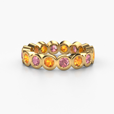 Cette bague superposable porte le nom Edwina 3 et le type de bague s'appelle une bague éternité. Par conséquent, toutes les pierres précieuses sont serties autour de l'anneau de la bague. Cette bague superposable forgée en or jaune 14 Carat a tout autour des petits rose tourmaline de 3 mm. Les rose tourmaline brillants sont tous d'identique et sont sertis dans l'anneau autour de la bague superposable. Tous les rose tourmaline sont soigneusement sélectionnés, précisément parce qu'ils doivent être aussi identiques que possible pour créer le meilleur résultat possible sur cette bague. Notre orfèvre place tous les rose tourmaline très précisément à la main, ce qui permet de renforcer l'effet éternité de la bague. La passion est ce qui anime nos orfèvres : créer la bague parfaite. Voici la beauté de notre métier ! Le résultat est une belle bague forgée en or jaune tendances dans laquelle la rangée de rose tourmaline semble continuer sans fin. Le symbole parfait pour votre amour infini pour elle ! Voici quelque chose de particulier ! En combinant les dernières techniques modernes, associées à une fabrication ancienne, nous sommes en mesure de fabriquer nos bagues dans notre propre studio. Chaque bijou est fabriqué sur commande. Ceci est avantageux car nous sommes en mesure de vous proposer un prix que vous ne trouverez nulle part ailleurs.Notre équipe de designers talentueux et passionnés ajoute chaque jour de nouveaux modèles bagues à notre collection en ligne. Notre objectif est de pouvoir vous offrir une grande variété de bijoux. N'hésitez pas à demander un devis si vous avez des souhaits spécifiques pour votre bague. Nous garantissons de vous faire une offre que vous ne pourrez pas refuser.Pour vous faciliter la tâche, vous pouvez facilement nous retourner tout bijou commandé dans les 30 jours suivant la livraison.