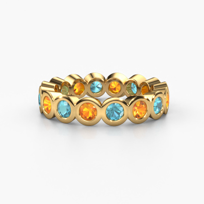Cette bague superposable porte le nom Edwina 3 et le type de bague s'appelle une bague éternité. Par conséquent, toutes les pierres précieuses sont serties autour de l'anneau de la bague. Cette bague superposable forgée en or jaune 14 Carat a tout autour des petits topaze bleue de 3 mm. Les topaze bleue brillants sont tous d'identique et sont sertis dans l'anneau autour de la bague superposable. Tous les topaze bleue sont soigneusement sélectionnés, précisément parce qu'ils doivent être aussi identiques que possible pour créer le meilleur résultat possible sur cette bague. Notre orfèvre place tous les topaze bleue très précisément à la main, ce qui permet de renforcer l'effet éternité de la bague. La passion est ce qui anime nos orfèvres : créer la bague parfaite. Voici la beauté de notre métier ! Le résultat est une belle bague forgée en or jaune tendances dans laquelle la rangée de topaze bleue semble continuer sans fin. Le symbole parfait pour votre amour infini pour elle ! Voici quelque chose de particulier ! En combinant les dernières techniques modernes, associées à une fabrication ancienne, nous sommes en mesure de fabriquer nos bagues dans notre propre studio. Chaque bijou est fabriqué sur commande. Ceci est avantageux car nous sommes en mesure de vous proposer un prix que vous ne trouverez nulle part ailleurs.Notre équipe de designers talentueux et passionnés ajoute chaque jour de nouveaux modèles bagues à notre collection en ligne. Notre objectif est de pouvoir vous offrir une grande variété de bijoux. N'hésitez pas à demander un devis si vous avez des souhaits spécifiques pour votre bague. Nous garantissons de vous faire une offre que vous ne pourrez pas refuser.Pour vous faciliter la tâche, vous pouvez facilement nous retourner tout bijou commandé dans les 30 jours suivant la livraison.