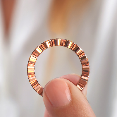 Cette bague superposable porte le nom Edwina 3 et le type de bague s'appelle une bague éternité. Par conséquent, toutes les pierres précieuses sont serties autour de l'anneau de la bague. Cette bague superposable forgée en or rose 14 Carat a tout autour des petits diamants bruns de 0.80 crt. Les diamants bruns brillants sont tous d'identique et sont sertis dans l'anneau autour de la bague superposable. Tous les diamants bruns sont soigneusement sélectionnés, précisément parce qu'ils doivent être aussi identiques que possible pour créer le meilleur résultat possible sur cette bague. Notre orfèvre place tous les diamants bruns très précisément à la main, ce qui permet de renforcer l'effet éternité de la bague. La passion est ce qui anime nos orfèvres : créer la bague parfaite. Voici la beauté de notre métier ! Le résultat est une belle bague forgée en or rose tendances dans laquelle la rangée de diamants bruns semble continuer sans fin. Le symbole parfait pour votre amour infini pour elle ! Voici quelque chose de particulier ! En combinant les dernières techniques modernes, associées à une fabrication ancienne, nous sommes en mesure de fabriquer nos bagues dans notre propre studio. Chaque bijou est fabriqué sur commande. Ceci est avantageux car nous sommes en mesure de vous proposer un prix que vous ne trouverez nulle part ailleurs.Notre équipe de designers talentueux et passionnés ajoute chaque jour de nouveaux modèles bagues à notre collection en ligne. Notre objectif est de pouvoir vous offrir une grande variété de bijoux. N'hésitez pas à demander un devis si vous avez des souhaits spécifiques pour votre bague. Nous garantissons de vous faire une offre que vous ne pourrez pas refuser.Pour vous faciliter la tâche, vous pouvez facilement nous retourner tout bijou commandé dans les 30 jours suivant la livraison.