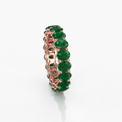 Cette bague superposable porte le nom Heddy OVL 3.5x4.5 et le type de bague s'appelle une bague éternité. Par conséquent, toutes les pierres précieuses sont serties autour de l'anneau de la bague. Cette bague superposable forgée en or rose 14 Carat a tout autour des petits émeraudes de 4.5x3.5 mm. Les émeraudes brillants sont tous d'identique et sont sertis dans l'anneau autour de la bague superposable. Tous les émeraudes sont soigneusement sélectionnés, précisément parce qu'ils doivent être aussi identiques que possible pour créer le meilleur résultat possible sur cette bague. Notre orfèvre place tous les émeraudes très précisément à la main, ce qui permet de renforcer l'effet éternité de la bague. La passion est ce qui anime nos orfèvres : créer la bague parfaite. Voici la beauté de notre métier ! Le résultat est une belle bague forgée en or rose fantaisie dans laquelle la rangée de émeraudes semble continuer sans fin. Le symbole parfait pour votre amour infini pour elle ! Voici quelque chose de particulier ! En combinant les dernières techniques modernes, associées à une fabrication ancienne, nous sommes en mesure de fabriquer nos bagues dans notre propre studio. Chaque bijou est fabriqué sur commande. Ceci est avantageux car nous sommes en mesure de vous proposer un prix que vous ne trouverez nulle part ailleurs.Notre équipe de designers talentueux et passionnés ajoute chaque jour de nouveaux modèles bagues à notre collection en ligne. Notre objectif est de pouvoir vous offrir une grande variété de bijoux. N'hésitez pas à demander un devis si vous avez des souhaits spécifiques pour votre bague. Nous garantissons de vous faire une offre que vous ne pourrez pas refuser.Pour vous faciliter la tâche, vous pouvez facilement nous retourner tout bijou commandé dans les 30 jours suivant la livraison.