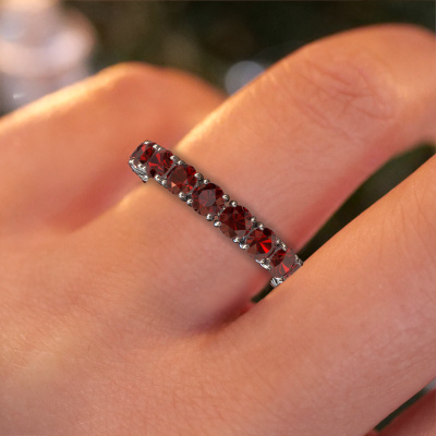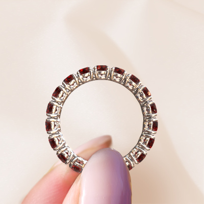 Cette bague superposable porte le nom Vivienne 3.4 et le type de bague s'appelle une bague éternité. Par conséquent, toutes les pierres précieuses sont serties autour de l'anneau de la bague. Cette bague superposable forgée en or blanc 14 Carat a tout autour des petits grenats de 3.4 mm. Les grenats brillants sont tous d'identique et sont sertis dans l'anneau autour de la bague superposable. Tous les grenats sont soigneusement sélectionnés, précisément parce qu'ils doivent être aussi identiques que possible pour créer le meilleur résultat possible sur cette bague. Notre orfèvre place tous les grenats très précisément à la main, ce qui permet de renforcer l'effet éternité de la bague. La passion est ce qui anime nos orfèvres : créer la bague parfaite. Voici la beauté de notre métier ! Le résultat est une belle bague forgée en or blanc classiques dans laquelle la rangée de grenats semble continuer sans fin. Le symbole parfait pour votre amour infini pour elle ! Voici quelque chose de particulier ! Devez-vous respecter un certain budget ? N'hésitez pas à nous contacter, nous serons heureux de vous conseiller sur toutes les possibilités. Dans tous les cas, nous offrons toutes les bagues à un prix que vous ne trouverez nulle part ailleurs, car nous ne fabriquerons la bague uniquement lorsque vous la commanderez. Cela nous permet de vous donner la garantie du meilleur prix.Notre équipe de designers talentueux et passionnés ajoute chaque jour de nouveaux modèles bagues à notre collection en ligne. Notre objectif est de pouvoir vous offrir une grande variété de bijoux. N'hésitez pas à demander un devis si vous avez des souhaits spécifiques pour votre bague. Nous garantissons de vous faire une offre que vous ne pourrez pas refuser.Pour vous faciliter la tâche, vous pouvez facilement nous retourner tout bijou commandé dans les 30 jours suivant la livraison.