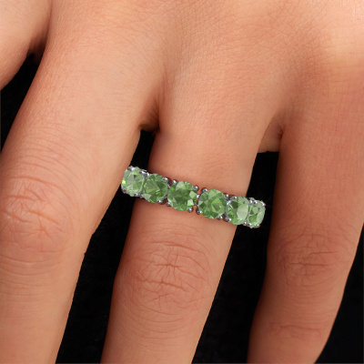 Cette bague porte le nom Vivienne 4.7 et le type de bague s'appelle une bague éternité. Par conséquent, toutes les pierres précieuses sont serties autour de l'anneau de la bague. Cette bague forgée en or blanc 14 Carat a tout autour des petits vert tourmaline de 4.7 mm. Les vert tourmaline brillants sont tous d'identique et sont sertis dans l'anneau autour de la bague. Tous les vert tourmaline sont soigneusement sélectionnés, précisément parce qu'ils doivent être aussi identiques que possible pour créer le meilleur résultat possible sur cette bague. Notre orfèvre place tous les vert tourmaline très précisément à la main, ce qui permet de renforcer l'effet éternité de la bague. La passion est ce qui anime nos orfèvres : créer la bague parfaite. Voici la beauté de notre métier ! Le résultat est une belle bague forgée en or blanc exclusives dans laquelle la rangée de vert tourmaline semble continuer sans fin. Le symbole parfait pour votre amour infini pour elle ! Voici quelque chose de particulier ! En combinant les dernières techniques modernes, associées à une fabrication ancienne, nous sommes en mesure de fabriquer nos bagues dans notre propre studio. Chaque bijou est fabriqué sur commande. Ceci est avantageux car nous sommes en mesure de vous proposer un prix que vous ne trouverez nulle part ailleurs.Nos designers talentueux ajoutent quotidiennement de nouveaux modèles à notre collection en ligne. Ensemble, ils créent une collection variée des plus beaux bijoux. Si vous préférez créer des bagues selon votre propre conception, n'hésitez pas à demander un devis. Nous vous ferons une offre incroyable, basée sur la qualité et le prix.Pour vous faciliter la tâche, vous pouvez facilement nous retourner tout bijou commandé dans les 30 jours suivant la livraison.