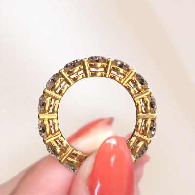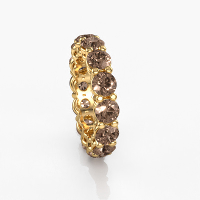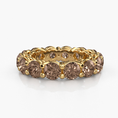 Cette bague superposable porte le nom Michelle full 4.7 et le type de bague s'appelle une bague éternité. Par conséquent, toutes les pierres précieuses sont serties autour de l'anneau de la bague. Cette bague superposable forgée en or jaune 14 Carat a tout autour des petits diamants bruns de 6.00 crt. Les diamants bruns brillants sont tous d'identique et sont sertis dans l'anneau autour de la bague superposable. Tous les diamants bruns sont soigneusement sélectionnés, précisément parce qu'ils doivent être aussi identiques que possible pour créer le meilleur résultat possible sur cette bague. Notre orfèvre place tous les diamants bruns très précisément à la main, ce qui permet de renforcer l'effet éternité de la bague. La passion est ce qui anime nos orfèvres : créer la bague parfaite. Voici la beauté de notre métier ! Le résultat est une belle bague forgée en or jaune exclusives dans laquelle la rangée de diamants bruns semble continuer sans fin. Le symbole parfait pour votre amour infini pour elle ! Voici quelque chose de particulier ! Puisque nous concevons et livrons nos propres bijoux, nous sommes en mesure de vous proposer une bague à un prix que vous ne pourrez pas trouver ailleurs. Une alliance est fabriquée sur commande, ce qui permet d'éviter les excédents de matériel et nous permet de vous proposer une superbe offre de prix. Nous comprenons qu'acheter votre bague en ligne soit un risque, mais nous vous assistons volontiers dans le processus de conception, en tenant compte de votre budget.Notre équipe de designers talentueux et passionnés ajoute chaque jour de nouveaux modèles bagues à notre collection en ligne. Notre objectif est de pouvoir vous offrir une grande variété de bijoux. N'hésitez pas à demander un devis si vous avez des souhaits spécifiques pour votre bague. Nous garantissons de vous faire une offre que vous ne pourrez pas refuser.Pour vous faciliter la tâche, vous pouvez facilement nous retourner tout bijou commandé dans les 30 jours suivant la livraison.