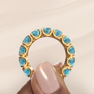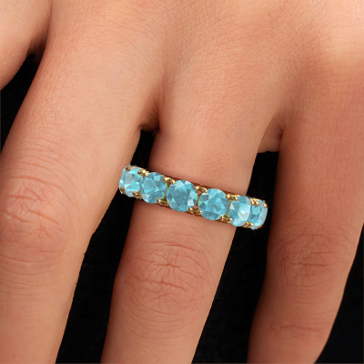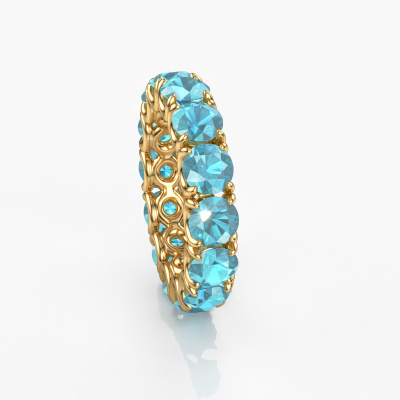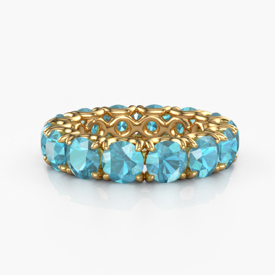 Cette bague porte le nom Estee 5.0 et le type de bague s'appelle une bague éternité. Par conséquent, toutes les pierres précieuses sont serties autour de l'anneau de la bague. Cette bague forgée en or jaune 14 Carat a tout autour des petits topaze bleue de 5 mm. Les topaze bleue brillants sont tous d'identique et sont sertis dans l'anneau autour de la bague. Tous les topaze bleue sont soigneusement sélectionnés, précisément parce qu'ils doivent être aussi identiques que possible pour créer le meilleur résultat possible sur cette bague. Notre orfèvre place tous les topaze bleue très précisément à la main, ce qui permet de renforcer l'effet éternité de la bague. La passion est ce qui anime nos orfèvres : créer la bague parfaite. Voici la beauté de notre métier ! Le résultat est une belle bague forgée en or jaune exclusives dans laquelle la rangée de topaze bleue semble continuer sans fin. Le symbole parfait pour votre amour infini pour elle ! Voici quelque chose de particulier ! Devez-vous respecter un certain budget ? N'hésitez pas à nous contacter, nous serons heureux de vous conseiller sur toutes les possibilités. Dans tous les cas, nous offrons toutes les bagues à un prix que vous ne trouverez nulle part ailleurs, car nous ne fabriquerons la bague uniquement lorsque vous la commanderez. Cela nous permet de vous donner la garantie du meilleur prix.Nos designers talentueux ajoutent quotidiennement de nouveaux modèles à notre collection en ligne. Ensemble, ils créent une collection variée des plus beaux bijoux. Si vous préférez créer des bagues selon votre propre conception, n'hésitez pas à demander un devis. Nous vous ferons une offre incroyable, basée sur la qualité et le prix.Pour vous faciliter la tâche, vous pouvez facilement nous retourner tout bijou commandé dans les 30 jours suivant la livraison.