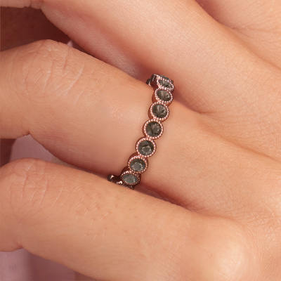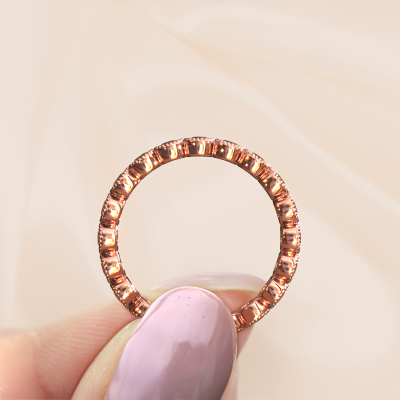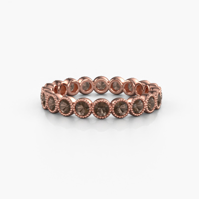 Cette bague porte le nom Mariam 0.05 et le type de bague s'appelle une bague éternité. Par conséquent, toutes les pierres précieuses sont serties autour de l'anneau de la bague. Cette bague forgée en or rose 14 Carat a tout autour des petits quartz fumé de 2.4 mm. Les quartz fumé brillants sont tous d'identique et sont sertis dans l'anneau autour de la bague. Tous les quartz fumé sont soigneusement sélectionnés, précisément parce qu'ils doivent être aussi identiques que possible pour créer le meilleur résultat possible sur cette bague. Notre orfèvre place tous les quartz fumé très précisément à la main, ce qui permet de renforcer l'effet éternité de la bague. La passion est ce qui anime nos orfèvres : créer la bague parfaite. Voici la beauté de notre métier ! Le résultat est une belle bague forgée en or rose modernes dans laquelle la rangée de quartz fumé semble continuer sans fin. Le symbole parfait pour votre amour infini pour elle ! Voici quelque chose de particulier ! En combinant les dernières techniques modernes, associées à une fabrication ancienne, nous sommes en mesure de fabriquer nos bagues dans notre propre studio. Chaque bijou est fabriqué sur commande. Ceci est avantageux car nous sommes en mesure de vous proposer un prix que vous ne trouverez nulle part ailleurs.