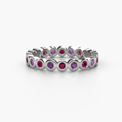 Cette bague superposable porte le nom Edwina 1 et le type de bague s'appelle une bague éternité. Par conséquent, toutes les pierres précieuses sont serties autour de l'anneau de la bague. Cette bague superposable forgée en or blanc 14 Carat a tout autour des petits rhodolites de 2 mm. Cette bague éternité pour femmes forgée en or blanc est une jolie bague superposable qui rendra votre demande en mariage très spéciale. Les rhodolites brillants sont tous d'identique et sont sertis autour de la bague superposable. Tous les rhodolites sont soigneusement sélectionnés, précisément parce qu'ils doivent être aussi identiques que possible pour créer le meilleur résultat possible sur cette bague. Ce sont des produits de la nature, de sorte qu'il existe encore des différences minimes entre chaque pierre. Mais comme tous nos rhodolites sont placés à la main avec beaucoup de précision par notre orfèvre, l'effet beaux peut être renforcé. Cela demande beaucoup de patience et une main habile, mais fabriquer la bague parfaite pour femmes est une passion qui anime nos orfèvres. Le résultat est une bague magnifique dans laquelle la rangée de rhodolites semble continuer sans fin. Le symbole de votre amour infini pour elle ! Magnifique n'est-ce pas ? En utilisant nos techniques modernes, nous sommes en mesure de concevoir et de personnaliser les bijoux de la plus haute qualité avec le plus grand soin pour vous. Nos bagues ont toujours un prix inférieur de 30% à celles des autres bijoutiers. Nous fabriquons des bagues à la commande afin de ne pas avoir à garder un stock important. Si vous avez un certain budget, nous serons ravis de vous conseiller tout en le respectant.De nouveaux modèles de bijoux sont ajoutés à notre collection en ligne quotidiennement. Notre équipe de designers passionnés s'efforce de créer des designs extraordinaires et variés. Avez-vous vu une bague qui vous plait ? N'hésitez pas à nous contacter. Grâce à un bon rapport qualité / prix, nous vous ferons une offre que vous ne pourrez pas refuser !Pour vous faciliter la tâche, vous pouvez facilement nous retourner tout bijou commandé dans les 30 jours suivant la livraison.