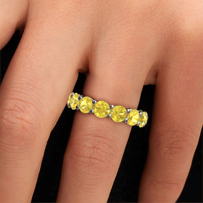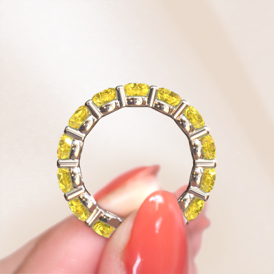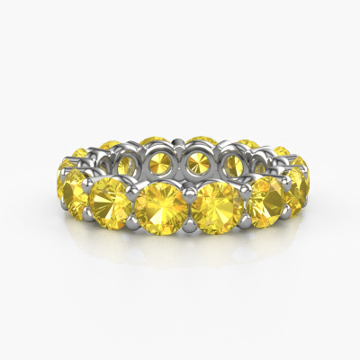 Cette bague porte le nom Heddy rnd 4.7 et le type de bague s'appelle une bague éternité. Par conséquent, toutes les pierres précieuses sont serties autour de l'anneau de la bague. Cette bague forgée en or blanc 14 Carat a tout autour des petits saphirs jaunes de 4.7 mm. Cette bague éternité pour femmes forgée en or blanc est une jolie bague qui rendra votre demande en mariage très spéciale. Les saphirs jaunes brillants sont tous d'identique et sont sertis autour de la bague. Tous les saphirs jaunes sont soigneusement sélectionnés, précisément parce qu'ils doivent être aussi identiques que possible pour créer le meilleur résultat possible sur cette bague. Ce sont des produits de la nature, de sorte qu'il existe encore des différences minimes entre chaque pierre. Mais comme tous nos saphirs jaunes sont placés à la main avec beaucoup de précision par notre orfèvre, l'effet éternité peut être renforcé. Cela demande beaucoup de patience et une main habile, mais fabriquer la bague parfaite pour femmes est une passion qui anime nos orfèvres. Le résultat est une bague magnifique dans laquelle la rangée de saphirs jaunes semble continuer sans fin. Le symbole de votre amour infini pour elle ! Magnifique n'est-ce pas ? Puisque nous concevons et livrons nos propres bijoux, nous sommes en mesure de vous proposer une bague à un prix que vous ne pourrez pas trouver ailleurs. Une alliance est fabriquée sur commande, ce qui permet d'éviter les excédents de matériel et nous permet de vous proposer une superbe offre de prix. Nous comprenons qu'acheter votre bague en ligne soit un risque, mais nous vous assistons volontiers dans le processus de conception, en tenant compte de votre budget.Notre équipe de designers talentueux et passionnés ajoute chaque jour de nouveaux modèles bagues à notre collection en ligne. Notre objectif est de pouvoir vous offrir une grande variété de bijoux. N'hésitez pas à demander un devis si vous avez des souhaits spécifiques pour votre bague. Nous garantissons de vous faire une offre que vous ne pourrez pas refuser.Pour vous faciliter la tâche, vous pouvez facilement nous retourner tout bijou commandé dans les 30 jours suivant la livraison.