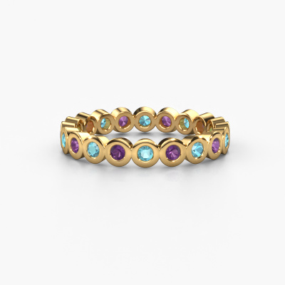 Cette bague superposable porte le nom Edwina 1 et le type de bague s'appelle une bague éternité. Par conséquent, toutes les pierres précieuses sont serties autour de l'anneau de la bague. Cette bague superposable forgée en or jaune 14 Carat a tout autour des petits topaze bleue de 2 mm. Cette bague éternité pour femmes forgée en or jaune est une jolie bague superposable qui rendra votre demande en mariage très spéciale. Les topaze bleue brillants sont tous d'identique et sont sertis autour de la bague superposable. Tous les topaze bleue sont soigneusement sélectionnés, précisément parce qu'ils doivent être aussi identiques que possible pour créer le meilleur résultat possible sur cette bague. Ce sont des produits de la nature, de sorte qu'il existe encore des différences minimes entre chaque pierre. Mais comme tous nos topaze bleue sont placés à la main avec beaucoup de précision par notre orfèvre, l'effet beaux peut être renforcé. Cela demande beaucoup de patience et une main habile, mais fabriquer la bague parfaite pour femmes est une passion qui anime nos orfèvres. Le résultat est une bague magnifique dans laquelle la rangée de topaze bleue semble continuer sans fin. Le symbole de votre amour infini pour elle ! Magnifique n'est-ce pas ? En utilisant nos techniques modernes, nous sommes en mesure de concevoir et de personnaliser les bijoux de la plus haute qualité avec le plus grand soin pour vous. Nos bagues ont toujours un prix inférieur de 30% à celles des autres bijoutiers. Nous fabriquons des bagues à la commande afin de ne pas avoir à garder un stock important. Si vous avez un certain budget, nous serons ravis de vous conseiller tout en le respectant.De nouveaux modèles de bijoux sont ajoutés à notre collection en ligne quotidiennement. Notre équipe de designers passionnés s'efforce de créer des designs extraordinaires et variés. Avez-vous vu une bague qui vous plait ? N'hésitez pas à nous contacter. Grâce à un bon rapport qualité / prix, nous vous ferons une offre que vous ne pourrez pas refuser !Pour vous faciliter la tâche, vous pouvez facilement nous retourner tout bijou commandé dans les 30 jours suivant la livraison.