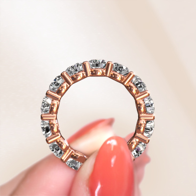 Cette bague porte le nom Heddy rnd 4.7 et le type de bague s'appelle une bague éternité. Par conséquent, toutes les pierres précieuses sont serties autour de l'anneau de la bague. Cette bague forgée en or rose 14 Carat a tout autour des petits zirkones de 4.7 mm. Cette bague éternité pour femmes forgée en or rose est une jolie bague qui rendra votre demande en mariage très spéciale. Les zirkones brillants sont tous d'identique et sont sertis autour de la bague. Tous les zirkones sont soigneusement sélectionnés, précisément parce qu'ils doivent être aussi identiques que possible pour créer le meilleur résultat possible sur cette bague. Ce sont des produits de la nature, de sorte qu'il existe encore des différences minimes entre chaque pierre. Mais comme tous nos zirkones sont placés à la main avec beaucoup de précision par notre orfèvre, l'effet éternité peut être renforcé. Cela demande beaucoup de patience et une main habile, mais fabriquer la bague parfaite pour femmes est une passion qui anime nos orfèvres. Le résultat est une bague magnifique dans laquelle la rangée de zirkones semble continuer sans fin. Le symbole de votre amour infini pour elle ! Magnifique n'est-ce pas ? Puisque nous concevons et livrons nos propres bijoux, nous sommes en mesure de vous proposer une bague à un prix que vous ne pourrez pas trouver ailleurs. Une alliance est fabriquée sur commande, ce qui permet d'éviter les excédents de matériel et nous permet de vous proposer une superbe offre de prix. Nous comprenons qu'acheter votre bague en ligne soit un risque, mais nous vous assistons volontiers dans le processus de conception, en tenant compte de votre budget.Notre équipe de designers talentueux et passionnés ajoute chaque jour de nouveaux modèles bagues à notre collection en ligne. Notre objectif est de pouvoir vous offrir une grande variété de bijoux. N'hésitez pas à demander un devis si vous avez des souhaits spécifiques pour votre bague. Nous garantissons de vous faire une offre que vous ne pourrez pas refuser.Pour vous faciliter la tâche, vous pouvez facilement nous retourner tout bijou commandé dans les 30 jours suivant la livraison.