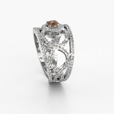 Cette bague unique forgée en platine, que nous avons appelée Regina, est un pur travail d’art ! La bague est faite d'or et est sertie d'un diamant brun ronds de 1.25 crt. Les plus petits détails ont été fabriqués avec beaucoup de patience et de passion par notre orfèvre. Ce véritable travail artisanal nécessite un œil expert et une main compétente pour concevoir une bague avec la plus grande précision. Et c'est précisément ce qui enthousiasme nos orfèvres ! Les beaux diamants bruns sont mis en place de manière spéciale, de telle sorte à ce qu'ils sortent encore mieux. Cela donne aux bagues pour femmes une allure supplémentaire. La bague est unique en raison de la pierre précieuse naturelle que nous avons spécialement sélectionnée pour cette bague Regina. Et en choisissant votre métal précieux, vous pouvez créer vous-même une bague unique. Que pensez-vous de cette bague exclusives en platine ? Vous pouvez créer cette bague via notre configurateur. Votre bague personnelle est par la suite fabriquée à la main par nos orfèvres. Le choix du métal précieux et des pierres précieuses peut être entièrement personnalisé. Avez-vous certaines idées pour votre bague, mais vous ne pouvez pas trouver nos options qui leur correspondent ? Alors faites-nous le savoir. Nous fabriquons votre bague personnelle entièrement selon vos souhaits.En utilisant nos techniques modernes, nous sommes en mesure de concevoir et de personnaliser les bijoux de la plus haute qualité avec le plus grand soin pour vous. Nos bagues ont toujours un prix inférieur de 30% à celles des autres bijoutiers. Nous fabriquons des bagues à la commande afin de ne pas avoir à garder un stock important. Si vous avez un certain budget, nous serons ravis de vous conseiller tout en le respectant.Pour vous faciliter la tâche, vous pouvez facilement nous retourner tout bijou commandé dans les 30 jours suivant la livraison. Avez-vous des questions ? Souhaitez-vous modifier un design existant avec vos propres idées ? Vous nous donc aussi contacterez. Notre équipe de professionnels se fera un plaisir de vous conseiller dans la création de votre bijou de rêve style exclusive.