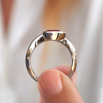 Lena est le nom que nous avons donné à cette bague. Cette bague forgée en or blanc 14 Carat est sertie d'un rubis. Vous recherchez une Bague forgée en or blanc unique et avec un look design ? Voici donc une belle bague que vous pouvez aussi