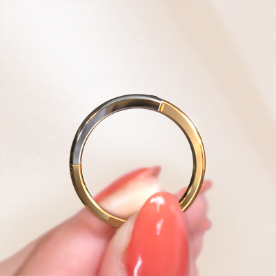 Dena est le nom que nous avons donné à cette bague. Cette bague forgée en or jaune 14 Carat est sertie d'un diamant noir. Vous recherchez une Bague forgée en or jaune unique et avec un look modernes ? Voici donc une belle bague que vous pouvez aussi ajuster à votre goût. Parfait donc pour une femmes contemporaine et modernes ! Un magnifique diamant noir est serti dans cette bague fantaisie. Celui-ci est sélectionné avec soin, car seules les plus belles pierres précieuses de votre bague peuvent la faire briller. Notre orfèvre fabrique votre bague dans notre propre atelier et place le diamant noir dans l'anneau avec une précision extrême. Donc, il est travaillé et poli jusqu'à ce que le résultat soit visible : la bague parfaite ! Nos orfèvres ne fabriqueront votre bague qu'une fois que vous l'aurez commandée. Nous ne faisons pas de stock. L'avantage de cela est que nous n'avons pas à inclure les frais de stockage dans nos prix, et nous pouvons donc vous offrir des bijoux à un prix très bas.De nouveaux modèles de bijoux sont ajoutés à notre collection en ligne quotidiennement. Notre équipe de designers passionnés s'efforce de créer des designs extraordinaires et variés. Avez-vous vu une bague qui vous plait ? N'hésitez pas à nous contacter. Grâce à un bon rapport qualité / prix, nous vous ferons une offre que vous ne pourrez pas refuser !Pour vous faciliter la tâche, vous pouvez facilement nous retourner tout bijou commandé dans les 30 jours suivant la livraison.Nous sommes curieux de savoir comment vous allez personnaliser votre bague Dena. Si quelque chose ne vous semble pas tout à fait clair, vous pouvez toujours nous contacter. Nous serons heureux de vous aider !