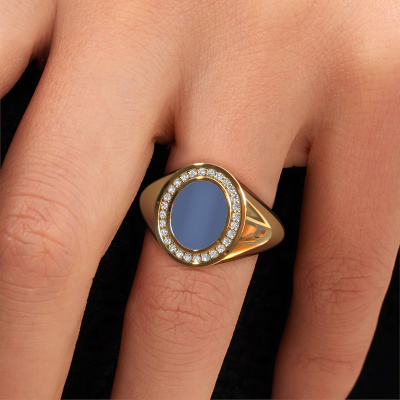 Cette chevalière forgée en or jaune est une véritable pièce d'artisanat. Cette chevalière spéciales porte le nom Hilda 1 et est sertie d'un nicolo bleue forme ovale. Dans notre atelier, nous combinons les techniques les plus innovantes avec le savoir-faire des orfèvres pour créer de magnifiques bagues dans les moindres détails. Pour nos or jaune fèvres, les bagues sont des bijoux fascinants. Dans le sceau, un écusson familial ou une initiale peuvent être gravés et, en particulier, les bagues avec le écusson familial peuvent parfois être une tradition. En outre, une chevalière est un bijou magnifique et spéciales, qui est très populaire de nos jours. Voici une raison suffisante pour poursuivre votre tradition familiale ou pour créer une nouvelle tradition ! Jetez un coup d'œil à toutes nos possibilités de gravures pour votre chevalière dans notre base de connaissances au bas de cette page ! Que pensez-vous de cette chevalière fantaisie en or jaune ? Vous pouvez créer cette bague via notre configurateur. Votre chevalière personnelle est par la suite fabriquée à la main par nos orfèvres. Le choix du métal précieux et des pierres précieuses peut être entièrement personnalisé. Avez-vous certaines idées pour votre chevalière, mais vous ne pouvez pas trouver nos options qui leur correspondent ? Alors faites-nous le savoir. Nous fabriquons votre chevalière personnelle entièrement selon vos souhaits.En combinant les dernières techniques modernes, associées à une fabrication ancienne, nous sommes en mesure de fabriquer nos bagues dans notre propre studio. Chaque bijou est fabriqué sur commande. Ceci est avantageux car nous sommes en mesure de vous proposer un prix que vous ne trouverez nulle part ailleurs.Pour vous faciliter la tâche, vous pouvez facilement nous retourner tout bijou commandé dans les 30 jours suivant la livraison. Êtes-vous prêt à concevoir votre bague Spéciales Hilda 1 pour femmes, mais avez-vous encore des questions ? Dans ce cas rassurez-vous. Notre équipe d'orfèvres expérimentés et passionnés est prête pour vous !