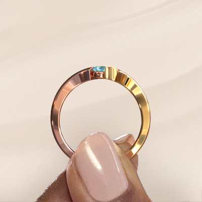 Arda est le nom que nous avons donné à cette bague. Cette bague forgée en or rose 14 Carat est sertie d'un topaze bleue. Vous recherchez une Bague forgée en or rose unique et avec un look modernes ? Voici donc une belle bague que vous pouvez aussi ajuster à votre goût. Parfait donc pour une femmes contemporaine et modernes ! Un magnifique topaze bleue est serti dans cette bague fantaisie. Celui-ci est sélectionné avec soin, car seules les plus belles pierres précieuses de votre bague peuvent la faire briller. Notre orfèvre fabrique votre bague dans notre propre atelier et place le topaze bleue dans l'anneau avec une précision extrême. Donc, il est travaillé et poli jusqu'à ce que le résultat soit visible : la bague parfaite ! Nos orfèvres fabriquent votre bague sur mesure, à votre goût et avec beaucoup de passion et de soin. Le or rose bague comme indiqué ici peut être ajusté à votre guise avec l'outil de configuration. Si vous avez des idées que vous ne pouvez pas appliquer avec l'outil de configuration, vous pouvez toujours les partager à nos créateurs de bijoux. Vous pouvez bien sûr toujours nous poser des questions.Nos orfèvres ne fabriqueront votre bague qu'une fois que vous l'aurez commandée. Nous ne faisons pas de stock. L'avantage de cela est que nous n'avons pas à inclure les frais de stockage dans nos prix, et nous pouvons donc vous offrir des bijoux à un prix très bas.Pour vous faciliter la tâche, vous pouvez facilement nous retourner tout bijou commandé dans les 30 jours suivant la livraison.Êtes-vous prête à faire vos choix personnels pour assembler la bague fantaisie Arda ? Ou avez-vous des questions ? Consultez notre foire aux questions ou contactez notre équipe d'orfèvres !