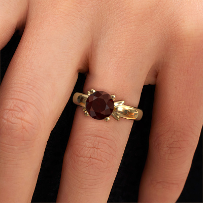 Voulez-vous une bague magnifique et pierre précieuses pour femmes avec une seule pierre précieuse pour attirer tous les regards ? Que pensez-vous de cette bague Jodie ? La bague Jodie montrée ici est forgée en or jaune avec un beau grenat ronds de 8 mm. Le grenat est soigneusement sélectionné par nos fournisseurs de grenats, puis placé par l'orfèvre dans la bague, conformément à l'artisanat traditionnel. La bague est finie et polie dans les moindres détails jusqu'à ce qu'une bague unique avec un beau grenat ait été créée. Fabriquée spécialement pour vous ! Une bague sur mesure fantaisie et gracieuse est le cadeau parfait ! De nouveaux designs exquis sont ajoutés quotidiennement par notre équipe d'orfèvres passionnés. Et chaque design peut être personnalisé. Personnalisez simplement les métaux précieux et la couleur des pierres précieuses qui seront utilisées, par exemple. Cela rendra votre design de bague fantaisie Jodie vraiment unique ! Si vous voulez faire graver votre bague Jodie, vous pouvez l'indiquer avec votre commande. Nous nous assurerons que votre bague soit faite à votre goût. En utilisant nos techniques modernes, nous sommes en mesure de concevoir et de personnaliser les bijoux de la plus haute qualité avec le plus grand soin pour vous. Nos bagues ont toujours un prix inférieur de 30% à celles des autres bijoutiers. Nous fabriquons des bagues à la commande afin de ne pas avoir à garder un stock important. Si vous avez un certain budget, nous serons ravis de vous conseiller tout en le respectant.Pour vous faciliter la tâche, vous pouvez facilement nous retourner tout bijou commandé dans les 30 jours suivant la livraison. Si vous avez des questions, vous pouvez toujours consulter notre foire aux questions. Si vous avez du mal à comprendre quoi que ce soit, ou si vous ne voyez pas la réponse à votre question, veuillez contacter l'équipe DiamondsByMe !