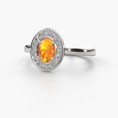La bague ci-dessus s'appelle Madelon 1 et ce type de bague s'appelle une bague Halo. La bague est forgée en platine et est sertie d'un citrine ovale de 7x5 mm comme pierre centrale et de petits diamants sertis autour. Avec cette bague halo pour femmes meilleurs prix forgée en platine, les plus petites pierres précieuses ont été serties autour du gros citrine. Cette bague porte également son nom : halo, qui désigne une guirlande lumineuse formée les pierres précieuses plus petites. Cependant, ces pierre précieuses plus petites doivent toutes être serties de la même manière, afin que la lumière ne soit pas introduite dans le citrine et qu’un véritable halo de lumière soit créé. Voici donc ce que font nos maîtres orfèvres. Avec la plus grande précision, chaque citrine est soigneusement sélectionné et est placé à la main dans la bague. Toujours et encore, la bague est maintenue à la lumière pour voir si l'effet spécial désiré est toujours visible. Le résultat est une bague unique, où le citrine choisi devient littéralement le centre brillants. Une bague magnifique ! La meilleure partie concernant ces bague gracieuses est que vous pouvez les personnaliser à votre guise. Votre style, votre choix, vos bague. De plus, vos bague classiques en platine seront fabriquées à la main avec des matériaux honnêtes!Devez-vous respecter un certain budget ? N'hésitez pas à nous contacter, nous serons heureux de vous conseiller sur toutes les possibilités. Dans tous les cas, nous offrons toutes les bagues à un prix que vous ne trouverez nulle part ailleurs, car nous ne fabriquerons la bague uniquement lorsque vous la commanderez. Cela nous permet de vous donner la garantie du meilleur prix.Pour vous faciliter la tâche, vous pouvez facilement nous retourner tout bijou commandé dans les 30 jours suivant la livraison. Souhaitez-vous concevoir votre bague unique pour femmes Madelon 1, mais certains points ne sont pas encore clairs ? Consultez notre page avec la foire aux questions ou contactez notre équipe de professionnels expérimentés.