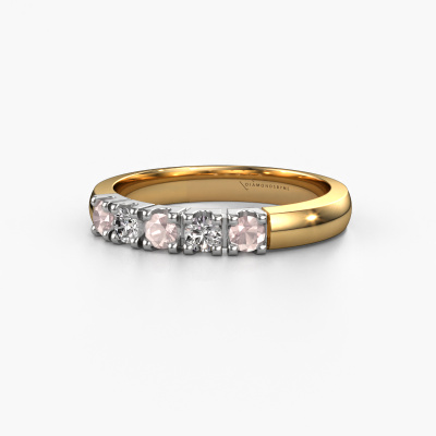 Cette bague style memoire porte le nom de Rianne 5. Ce type de bague s'appelle «Mémoire», car elle est créée avec un profil droit. Cela permet de porter la bague à côté d'autres bagues. Cette bague est en or jaune 14 Carat et contient un champagne morganite associé à une diamant de 2.7 mm serties sur l'anneau. Comme vous pouvez le constater, avec cette belle mémoire pour femmes en or jaune, de champagne morganite sont sertis les uns à côté des autres sur la bague. Le sens de l'mémoire est littéralement de 'travailler ensemble'. Et c’est exactement ce que font ces pierres précieuses : ensemble, elles créent un effet spécial supplémentaire sur l'anneau avec un anneau classiques ! Une belle symbolique pour un anneau, non ? Tous les champagne morganite soigneusement sélectionnés sont placés à la main par notre maître orfèvre. Un travail très précis, qui tire le meilleur parti de notre combinaison unique d'artisanat pur et des techniques d'orfèvre les plus modernes. Toutes les pierres précieuses doivent être serties exactement de la même manière pour diffuser parfaitement la lumière. Par conséquent, l'orfèvre gardera cette bague sous la lumière pour voir si les champagne morganite sont placés correctement. Cela demande une main habile et beaucoup de patience, mais le résultat est un véritable chef-d'œuvre. Et c'est ce que nous recherchons !