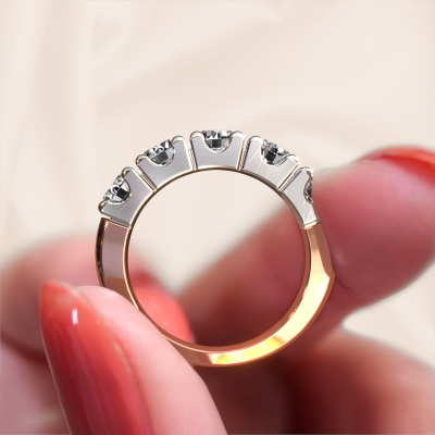 Cette bague style memoire porte le nom de Rianne 5. Ce type de bague s'appelle «Mémoire», car elle est créée avec un profil droit. Cela permet de porter la bague à côté d'autres bagues. Cette bague est en or rose 14 Carat et contient un diamant associé à une diamant de 0.50 crt serties sur l'anneau. Comme vous pouvez le constater, avec cette belle mémoire pour femmes en or rose, de diamants sont sertis les uns à côté des autres sur la bague. Le sens de l'mémoire est littéralement de 'travailler ensemble'. Et c’est exactement ce que font ces pierres précieuses : ensemble, elles créent un effet spécial supplémentaire sur l'anneau avec un anneau classiques ! Une belle symbolique pour un anneau, non ? Tous les diamants soigneusement sélectionnés sont placés à la main par notre maître orfèvre. Un travail très précis, qui tire le meilleur parti de notre combinaison unique d'artisanat pur et des techniques d'orfèvre les plus modernes. Toutes les pierres précieuses doivent être serties exactement de la même manière pour diffuser parfaitement la lumière. Par conséquent, l'orfèvre gardera cette bague sous la lumière pour voir si les diamants sont placés correctement. Cela demande une main habile et beaucoup de patience, mais le résultat est un véritable chef-d'œuvre. Et c'est ce que nous recherchons ! En combinant les dernières techniques modernes, associées à une fabrication ancienne, nous sommes en mesure de fabriquer nos bagues dans notre propre studio. Chaque bijou est fabriqué sur commande. Ceci est avantageux car nous sommes en mesure de vous proposer un prix que vous ne trouverez nulle part ailleurs.