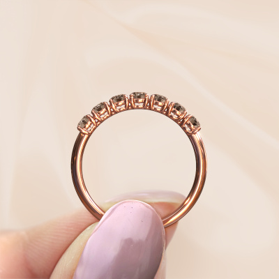 Comment décririez-vous votre propre style ? Aimez-vous quelque chose de différent de l'habituel ? Cette bague forgée en or rose memoire est une bague magnifique que vous pouvez ajuster à votre goût. Le diamant brun est serti dans cette bague. Ces diamants bruns ont été soigneusement sélectionnés, car nous pensons que seules les plus belles pierres précieuses doivent briller sur votre bague, n'est-ce pas ? Notre orfèvre fabrique votre bague, en bas, dans notre propre atelier et place le diamant brun sur la bague avec une précision extrême. La bague est Donc travaillée et polie jusqu'à ce que le résultat soit visible : une bague parfaite, qui témoigne le goût d'une femmes ! Une fois que vous avez conçu votre bague Vivienne Half avec notre configurateur, nos orfèvres se mettent à sa fabrication pour vous. La fabrication se fait de manière traditionnelle avec passion et soin. De plus, nous travaillons avec des matériaux extraits de façon équitable. Si vous voulez changer quelque chose, vous pouvez le faire avec notre configurateur. Si vous avez des souhaits spécifiques pour votre bague Vivienne Half, mais si vous ne voyez pas une option qui leur corresponde dans le configurateur, veuillez contacter notre équipe de designers expérimentés. Voulez-vous que votre bague Vivienne Half memoire soit encore plus personnelle ? Vous pouvez aussi bien sûr la faire graver. Veuillez simplement l'indiquer avec votre commande. En utilisant nos techniques modernes, nous sommes en mesure de concevoir et de personnaliser les bijoux de la plus haute qualité avec le plus grand soin pour vous. Nos bagues ont toujours un prix inférieur de 30% à celles des autres bijoutiers. Nous fabriquons des bagues à la commande afin de ne pas avoir à garder un stock important. Si vous avez un certain budget, nous serons ravis de vous conseiller tout en le respectant.Pour vous faciliter la tâche, vous pouvez facilement nous retourner tout bijou commandé dans les 30 jours suivant la livraison. Avez-vous encore des questions ? N’hésitez pas à nous contacter. Nos orfèvres seront heureux de vous conseiller sur la création de votre propre bague style tendance Vivienne Half.