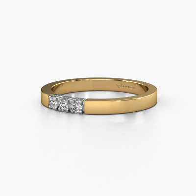Cette bague style 3 pierres porte le nom de Dana 3. Ce type de bague s'appelle «Mémoire», car elle est créée avec un profil droit. Cela permet de porter la bague à côté d'autres bagues. Cette bague est en or jaune 14 Carat et contient un diamant associé à une diamant synthétique de 0.03 crt serties sur l'anneau. Comme vous pouvez le constater, avec cette belle mémoire pour femmes en or jaune, de diamants sont sertis les uns à côté des autres sur la bague. Le sens de l'mémoire est littéralement de 'travailler ensemble'. Et c’est exactement ce que font ces pierres précieuses : ensemble, elles créent un effet spécial supplémentaire sur l'anneau avec un anneau modernes ! Une belle symbolique pour un anneau, non ? Tous les diamants soigneusement sélectionnés sont placés à la main par notre maître orfèvre. Un travail très précis, qui tire le meilleur parti de notre combinaison unique d'artisanat pur et des techniques d'orfèvre les plus modernes. Toutes les pierres précieuses doivent être serties exactement de la même manière pour diffuser parfaitement la lumière. Par conséquent, l'orfèvre gardera cette bague sous la lumière pour voir si les diamants sont placés correctement. Cela demande une main habile et beaucoup de patience, mais le résultat est un véritable chef-d'œuvre. Et c'est ce que nous recherchons ! [Bestp1r_long] Nos designers talentueux ajoutent quotidiennement de nouveaux modèles à notre collection en ligne. Ensemble, ils créent une collection variée des plus beaux bijoux. Si vous préférez créer des bagues selon votre propre conception, n'hésitez pas à demander un devis. Nous vous ferons une offre incroyable, basée sur la qualité et le prix. Pour vous faciliter la tâche, vous pouvez facilement nous retourner tout bijou commandé dans les 30 jours suivant la livraison.'