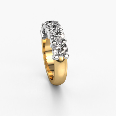 Cette bague style 5 pierres porte le nom de Michelle 5. Ce type de bague s'appelle «Mémoire», car elle est créée avec un profil droit. Cela permet de porter la bague à côté d'autres bagues. Cette bague est en or jaune 14 Carat et contient un diamant associé à une diamant synthétique de 0.40 crt serties sur l'anneau. Comme vous pouvez le constater, avec cette belle mémoire pour femmes en or jaune, de diamants sont sertis les uns à côté des autres sur la bague. Le sens de l'mémoire est littéralement de 'travailler ensemble'. Et c’est exactement ce que font ces pierres précieuses : ensemble, elles créent un effet spécial supplémentaire sur l'anneau avec un anneau classiques ! Une belle symbolique pour un anneau, non ? Tous les diamants soigneusement sélectionnés sont placés à la main par notre maître orfèvre. Un travail très précis, qui tire le meilleur parti de notre combinaison unique d'artisanat pur et des techniques d'orfèvre les plus modernes. Toutes les pierres précieuses doivent être serties exactement de la même manière pour diffuser parfaitement la lumière. Par conséquent, l'orfèvre gardera cette bague sous la lumière pour voir si les diamants sont placés correctement. Cela demande une main habile et beaucoup de patience, mais le résultat est un véritable chef-d'œuvre. Et c'est ce que nous recherchons ! [Bestp1r_long]