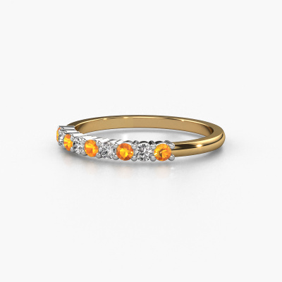Cette bague style 9 pierres porte le nom de Yasmin 9. Ce type de bague s'appelle «Mémoire», car elle est créée avec un profil droit. Cela permet de porter la bague à côté d'autres bagues. Cette bague est en or jaune 14 Carat et contient un citrine associé à une diamant de 2.4 mm serties sur l'anneau. Comme vous pouvez le constater, avec cette belle mémoire pour femmes en or jaune, de citrines sont sertis les uns à côté des autres sur la bague. Le sens de l'mémoire est littéralement de 'travailler ensemble'. Et c’est exactement ce que font ces pierres précieuses : ensemble, elles créent un effet spécial supplémentaire sur l'anneau avec un anneau classiques ! Une belle symbolique pour un anneau, non ? Tous les citrines soigneusement sélectionnés sont placés à la main par notre maître orfèvre. Un travail très précis, qui tire le meilleur parti de notre combinaison unique d'artisanat pur et des techniques d'orfèvre les plus modernes. Toutes les pierres précieuses doivent être serties exactement de la même manière pour diffuser parfaitement la lumière. Par conséquent, l'orfèvre gardera cette bague sous la lumière pour voir si les citrines sont placés correctement. Cela demande une main habile et beaucoup de patience, mais le résultat est un véritable chef-d'œuvre. Et c'est ce que nous recherchons ! [Bestp1r_long] Notre équipe de designers talentueux et passionnés ajoute chaque jour de nouveaux modèles bagues à notre collection en ligne. Notre objectif est de pouvoir vous offrir une grande variété de bijoux. N'hésitez pas à demander un devis si vous avez des souhaits spécifiques pour votre bague. Nous garantissons de vous faire une offre que vous ne pourrez pas refuser. Pour vous faciliter la tâche, vous pouvez facilement nous retourner tout bijou commandé dans les 30 jours suivant la livraison.'