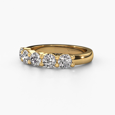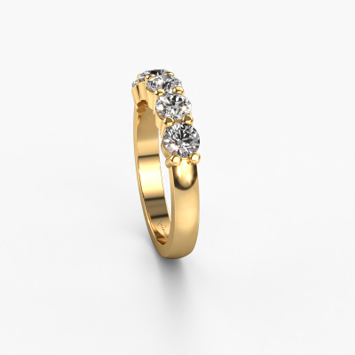 Cette bague style 5 pierres porte le nom de Yasmin 5. Ce type de bague s'appelle «Mémoire», car elle est créée avec un profil droit. Cela permet de porter la bague à côté d'autres bagues. Cette bague est en or jaune 14 Carat et contient un diamant associé à une diamant de 0.25 crt serties sur l'anneau. Comme vous pouvez le constater, avec cette belle mémoire pour femmes en or jaune, de diamants sont sertis les uns à côté des autres sur la bague. Le sens de l'mémoire est littéralement de 'travailler ensemble'. Et c’est exactement ce que font ces pierres précieuses : ensemble, elles créent un effet spécial supplémentaire sur l'anneau avec un anneau classiques ! Une belle symbolique pour un anneau, non ? Tous les diamants soigneusement sélectionnés sont placés à la main par notre maître orfèvre. Un travail très précis, qui tire le meilleur parti de notre combinaison unique d'artisanat pur et des techniques d'orfèvre les plus modernes. Toutes les pierres précieuses doivent être serties exactement de la même manière pour diffuser parfaitement la lumière. Par conséquent, l'orfèvre gardera cette bague sous la lumière pour voir si les diamants sont placés correctement. Cela demande une main habile et beaucoup de patience, mais le résultat est un véritable chef-d'œuvre. Et c'est ce que nous recherchons ! [Bestp1r_long] Nos designers talentueux ajoutent quotidiennement de nouveaux modèles à notre collection en ligne. Ensemble, ils créent une collection variée des plus beaux bijoux. Si vous préférez créer des bagues selon votre propre conception, n'hésitez pas à demander un devis. Nous vous ferons une offre incroyable, basée sur la qualité et le prix. Pour vous faciliter la tâche, vous pouvez facilement nous retourner tout bijou commandé dans les 30 jours suivant la livraison.'