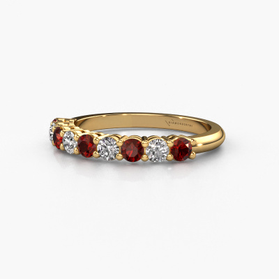 Cette bague style 9 pierres porte le nom de Michelle 9. Ce type de bague s'appelle «Mémoire», car elle est créée avec un profil droit. Cela permet de porter la bague à côté d'autres bagues. Cette bague est en or jaune 14 Carat et contient un grenat associé à une diamant synthétique de 2.7 mm serties sur l'anneau. Comme vous pouvez le constater, avec cette belle mémoire pour femmes en or jaune, de grenats sont sertis les uns à côté des autres sur la bague. Le sens de l'mémoire est littéralement de 'travailler ensemble'. Et c’est exactement ce que font ces pierres précieuses : ensemble, elles créent un effet spécial supplémentaire sur l'anneau avec un anneau classiques ! Une belle symbolique pour un anneau, non ? Tous les grenats soigneusement sélectionnés sont placés à la main par notre maître orfèvre. Un travail très précis, qui tire le meilleur parti de notre combinaison unique d'artisanat pur et des techniques d'orfèvre les plus modernes. Toutes les pierres précieuses doivent être serties exactement de la même manière pour diffuser parfaitement la lumière. Par conséquent, l'orfèvre gardera cette bague sous la lumière pour voir si les grenats sont placés correctement. Cela demande une main habile et beaucoup de patience, mais le résultat est un véritable chef-d'œuvre. Et c'est ce que nous recherchons ! [Bestp1r_long] Notre équipe de designers talentueux et passionnés ajoute chaque jour de nouveaux modèles bagues à notre collection en ligne. Notre objectif est de pouvoir vous offrir une grande variété de bijoux. N'hésitez pas à demander un devis si vous avez des souhaits spécifiques pour votre bague. Nous garantissons de vous faire une offre que vous ne pourrez pas refuser. Pour vous faciliter la tâche, vous pouvez facilement nous retourner tout bijou commandé dans les 30 jours suivant la livraison.'