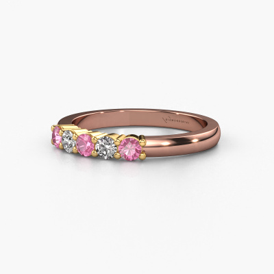 Cette bague style 5 pierres porte le nom de Yasmin 5. Ce type de bague s'appelle «Mémoire», car elle est créée avec un profil droit. Cela permet de porter la bague à côté d'autres bagues. Cette bague est en or rose 14 Carat et contient un saphir rose associé à une diamant de 3 mm serties sur l'anneau. Comme vous pouvez le constater, avec cette belle mémoire pour femmes en or rose, de saphirs roses sont sertis les uns à côté des autres sur la bague. Le sens de l'mémoire est littéralement de 'travailler ensemble'. Et c’est exactement ce que font ces pierres précieuses : ensemble, elles créent un effet spécial supplémentaire sur l'anneau avec un anneau classiques ! Une belle symbolique pour un anneau, non ? Tous les saphirs roses soigneusement sélectionnés sont placés à la main par notre maître orfèvre. Un travail très précis, qui tire le meilleur parti de notre combinaison unique d'artisanat pur et des techniques d'orfèvre les plus modernes. Toutes les pierres précieuses doivent être serties exactement de la même manière pour diffuser parfaitement la lumière. Par conséquent, l'orfèvre gardera cette bague sous la lumière pour voir si les saphirs roses sont placés correctement. Cela demande une main habile et beaucoup de patience, mais le résultat est un véritable chef-d'œuvre. Et c'est ce que nous recherchons ! [Bestp1r_long] Nos designers talentueux ajoutent quotidiennement de nouveaux modèles à notre collection en ligne. Ensemble, ils créent une collection variée des plus beaux bijoux. Si vous préférez créer des bagues selon votre propre conception, n'hésitez pas à demander un devis. Nous vous ferons une offre incroyable, basée sur la qualité et le prix. Pour vous faciliter la tâche, vous pouvez facilement nous retourner tout bijou commandé dans les 30 jours suivant la livraison.'