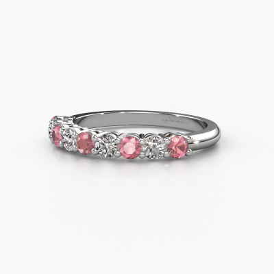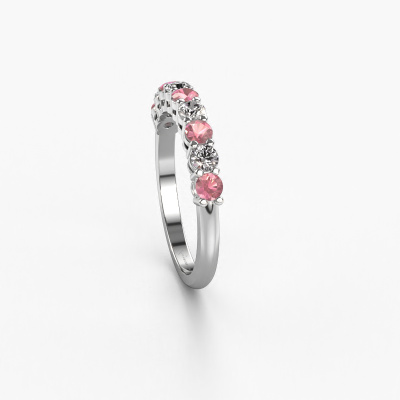 Cette bague style 9 pierres porte le nom de Michelle 9. Ce type de bague s'appelle «Mémoire», car elle est créée avec un profil droit. Cela permet de porter la bague à côté d'autres bagues. Cette bague est en platine et contient un rose tourmaline associé à une diamant synthétique de 2.7 mm serties sur l'anneau. Comme vous pouvez le constater, avec cette belle mémoire pour femmes en platine, de rose tourmaline sont sertis les uns à côté des autres sur la bague. Le sens de l'mémoire est littéralement de 'travailler ensemble'. Et c’est exactement ce que font ces pierres précieuses : ensemble, elles créent un effet spécial supplémentaire sur l'anneau avec un anneau classiques ! Une belle symbolique pour un anneau, non ? Tous les rose tourmaline soigneusement sélectionnés sont placés à la main par notre maître orfèvre. Un travail très précis, qui tire le meilleur parti de notre combinaison unique d'artisanat pur et des techniques d'orfèvre les plus modernes. Toutes les pierres précieuses doivent être serties exactement de la même manière pour diffuser parfaitement la lumière. Par conséquent, l'orfèvre gardera cette bague sous la lumière pour voir si les rose tourmaline sont placés correctement. Cela demande une main habile et beaucoup de patience, mais le résultat est un véritable chef-d'œuvre. Et c'est ce que nous recherchons ! [Bestp1r_long] Notre équipe de designers talentueux et passionnés ajoute chaque jour de nouveaux modèles bagues à notre collection en ligne. Notre objectif est de pouvoir vous offrir une grande variété de bijoux. N'hésitez pas à demander un devis si vous avez des souhaits spécifiques pour votre bague. Nous garantissons de vous faire une offre que vous ne pourrez pas refuser. Pour vous faciliter la tâche, vous pouvez facilement nous retourner tout bijou commandé dans les 30 jours suivant la livraison.'