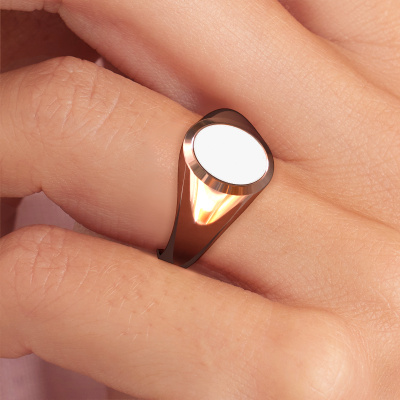 Cette chevalière forgée en or rose est une véritable pièce d'artisanat. Cette chevalière beaux porte le nom Evon 1 et est sertie d'un émail blanc forme ovale. Dans notre atelier, nous combinons les techniques les plus innovantes avec le savoir-faire des orfèvres pour créer de magnifiques bagues dans les moindres détails. Pour nos or rose fèvres, les bagues sont des bijoux fascinants. Dans le sceau, un écusson familial ou une initiale peuvent être gravés et, en particulier, les bagues avec le écusson familial peuvent parfois être une tradition. En outre, une chevalière est un bijou magnifique et beaux, qui est très populaire de nos jours. Voici une raison suffisante pour poursuivre votre tradition familiale ou pour créer une nouvelle tradition ! Jetez un coup d'œil à toutes nos possibilités de gravures pour votre chevalière dans notre base de connaissances au bas de cette page ! Nos orfèvres fabriquent votre chevalière sur mesure, à votre goût et avec beaucoup de passion et de soin. Le or rose chevalière comme indiqué ici peut être ajusté à votre guise avec l'outil de configuration. Si vous avez des idées que vous ne pouvez pas appliquer avec l'outil de configuration, vous pouvez toujours les partager à nos créateurs de bijoux. Vous pouvez bien sûr toujours nous poser des questions.En combinant les dernières techniques modernes, associées à une fabrication ancienne, nous sommes en mesure de fabriquer nos bagues dans notre propre studio. Chaque bijou est fabriqué sur commande. Ceci est avantageux car nous sommes en mesure de vous proposer un prix que vous ne trouverez nulle part ailleurs.Pour vous faciliter la tâche, vous pouvez facilement nous retourner tout bijou commandé dans les 30 jours suivant la livraison. Êtes-vous prêt à concevoir votre bague Beaux Evon 1 pour femmes, mais avez-vous encore des questions ? Dans ce cas rassurez-vous. Notre équipe d'orfèvres expérimentés et passionnés est prête pour vous !