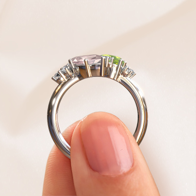 Comment décririez-vous votre propre style ? Aimez-vous quelque chose de différent de l'habituel ? Cette bague forgée en or blanc spéciales est une bague magnifique que vous pouvez ajuster à votre goût. Le champagne morganite est serti dans cette bague. Ces champagne morganite ont été soigneusement sélectionnés, car nous pensons que seules les plus belles pierres précieuses doivent briller sur votre bague, n'est-ce pas ? Notre orfèvre fabrique votre bague, en bas, dans notre propre atelier et place le champagne morganite sur la bague avec une précision extrême. La bague est Donc travaillée et polie jusqu'à ce que le résultat soit visible : une bague parfaite, qui témoigne le goût d'une femmes ! Votre bague personnelle Amanda que vous vous créez est fabriquée avec amour et passion par nos orfèvres. Préféreriez-vous une option autre que la bague en or blanc Amanda présentée ici ? Vous avez alors diverses options possibles via le configurateur. Si vous n'êtes pas complètement sûr(e), nous serons ravis de vous conseiller !Puisque nous concevons et livrons nos propres bijoux, nous sommes en mesure de vous proposer une bague à un prix que vous ne pourrez pas trouver ailleurs. Une alliance est fabriquée sur commande, ce qui permet d'éviter les excédents de matériel et nous permet de vous proposer une superbe offre de prix. Nous comprenons qu'acheter votre bague en ligne soit un risque, mais nous vous assistons volontiers dans le processus de conception, en tenant compte de votre budget.Pour vous faciliter la tâche, vous pouvez facilement nous retourner tout bijou commandé dans les 30 jours suivant la livraison. Êtes-vous prête à donner vie à votre souhait avec cette bague Amanda fantaisie ? Ou peut-être avez-vous encore des questions ? Dans ce cas dites-le nous. L'équipe DiamondsByMe est prête pour vous aider !