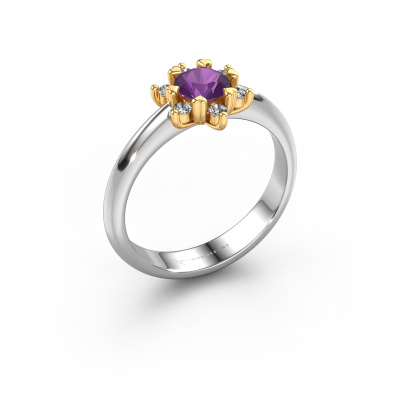 Comment décririez-vous votre propre style ? Aimez-vous quelque chose de différent de l'habituel ? Cette bague forgée en or blanc flower est une bague magnifique que vous pouvez ajuster à votre goût. Le améthyste est serti dans cette bague. Ces améthystes ont été soigneusement sélectionnés, car nous pensons que seules les plus belles pierres précieuses doivent briller sur votre bague, n'est-ce pas ? Notre orfèvre fabrique votre bague, en bas, dans notre propre atelier et place le améthyste sur la bague avec une précision extrême. La bague est Donc travaillée et polie jusqu'à ce que le résultat soit visible : une bague parfaite, qui témoigne le goût d'une femmes ! Une fois que vous avez conçu votre bague Liesbeth avec notre configurateur, nos orfèvres se mettent à sa fabrication pour vous. La fabrication se fait de manière traditionnelle avec passion et soin. De plus, nous travaillons avec des matériaux extraits de façon équitable. Si vous voulez changer quelque chose, vous pouvez le faire avec notre configurateur. Si vous avez des souhaits spécifiques pour votre bague Liesbeth, mais si vous ne voyez pas une option qui leur corresponde dans le configurateur, veuillez contacter notre équipe de designers expérimentés.En utilisant nos techniques modernes, nous sommes en mesure de concevoir et de personnaliser les bijoux de la plus haute qualité avec le plus grand soin pour vous. Nos bagues ont toujours un prix inférieur de 30% à celles des autres bijoutiers. Nous fabriquons des bagues à la commande afin de ne pas avoir à garder un stock important. Si vous avez un certain budget, nous serons ravis de vous conseiller tout en le respectant.Pour vous faciliter la tâche, vous pouvez facilement nous retourner tout bijou commandé dans les 30 jours suivant la livraison. Êtes-vous prête à donner vie à votre souhait avec cette bague Liesbeth classiques ? Ou peut-être avez-vous encore des questions ? Dans ce cas dites-le nous. L'équipe DiamondsByMe est prête pour vous aider !