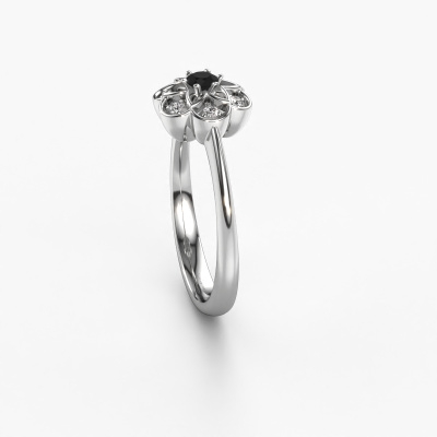 Comment décririez-vous votre propre style ? Aimez-vous quelque chose de différent de l'habituel ? Cette bague forgée en or blanc flower est une bague magnifique que vous pouvez ajuster à votre goût. Le diamant noir est serti dans cette bague. Ces diamants noirs ont été soigneusement sélectionnés, car nous pensons que seules les plus belles pierres précieuses doivent briller sur votre bague, n'est-ce pas ? Notre orfèvre fabrique votre bague, en bas, dans notre propre atelier et place le diamant noir sur la bague avec une précision extrême. La bague est Donc travaillée et polie jusqu'à ce que le résultat soit visible : une bague parfaite, qui témoigne le goût d'une femmes ! Une fois que vous avez conçu votre bague Uma avec notre configurateur, nos orfèvres se mettent à sa fabrication pour vous. La fabrication se fait de manière traditionnelle avec passion et soin. De plus, nous travaillons avec des matériaux extraits de façon équitable. Si vous voulez changer quelque chose, vous pouvez le faire avec notre configurateur. Si vous avez des souhaits spécifiques pour votre bague Uma, mais si vous ne voyez pas une option qui leur corresponde dans le configurateur, veuillez contacter notre équipe de designers expérimentés.Devez-vous respecter un certain budget ? N'hésitez pas à nous contacter, nous serons heureux de vous conseiller sur toutes les possibilités. Dans tous les cas, nous offrons toutes les bagues à un prix que vous ne trouverez nulle part ailleurs, car nous ne fabriquerons la bague uniquement lorsque vous la commanderez. Cela nous permet de vous donner la garantie du meilleur prix.Pour vous faciliter la tâche, vous pouvez facilement nous retourner tout bijou commandé dans les 30 jours suivant la livraison. Êtes-vous prête à donner vie à votre souhait avec cette bague Uma tendances ? Ou peut-être avez-vous encore des questions ? Dans ce cas dites-le nous. L'équipe DiamondsByMe est prête pour vous aider !