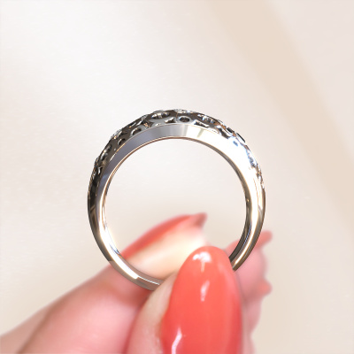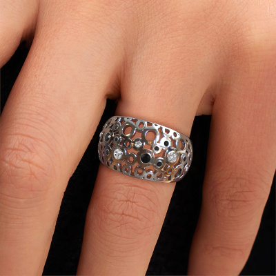 Comment décririez-vous votre propre style ? Aimez-vous quelque chose de différent de l'habituel ? Cette bague forgée en or blanc larges est une bague magnifique que vous pouvez ajuster à votre goût. Le diamant noir est serti dans cette bague. Ces diamants noirs ont été soigneusement sélectionnés, car nous pensons que seules les plus belles pierres précieuses doivent briller sur votre bague, n'est-ce pas ? Notre orfèvre fabrique votre bague, en bas, dans notre propre atelier et place le diamant noir sur la bague avec une précision extrême. La bague est Donc travaillée et polie jusqu'à ce que le résultat soit visible : une bague parfaite, qui témoigne le goût d'une femmes ! Que pensez-vous de cette bague fantaisie en or blanc ? Vous pouvez créer cette bague via notre configurateur. Votre bague personnelle est par la suite fabriquée à la main par nos orfèvres. Le choix du métal précieux et des pierres précieuses peut être entièrement personnalisé. Avez-vous certaines idées pour votre bague, mais vous ne pouvez pas trouver nos options qui leur correspondent ? Alors faites-nous le savoir. Nous fabriquons votre bague personnelle entièrement selon vos souhaits.En utilisant nos techniques modernes, nous sommes en mesure de concevoir et de personnaliser les bijoux de la plus haute qualité avec le plus grand soin pour vous. Nos bagues ont toujours un prix inférieur de 30% à celles des autres bijoutiers. Nous fabriquons des bagues à la commande afin de ne pas avoir à garder un stock important. Si vous avez un certain budget, nous serons ravis de vous conseiller tout en le respectant.Pour vous faciliter la tâche, vous pouvez facilement nous retourner tout bijou commandé dans les 30 jours suivant la livraison. Êtes-vous prête à donner vie à votre souhait avec cette bague Jaylinn fantaisie ? Ou peut-être avez-vous encore des questions ? Dans ce cas dites-le nous. L'équipe DiamondsByMe est prête pour vous aider !