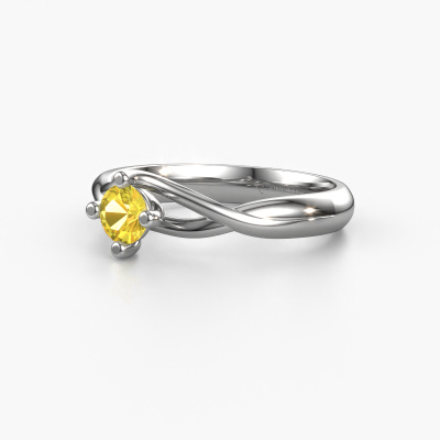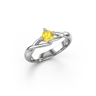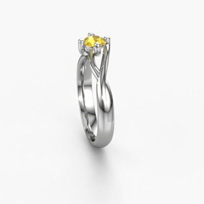 Paulien est le nom que nous avons donné à cette bague. Cette bague forgée en or blanc 14 Carat est sertie d'un saphir jaune d'une de 4.2 mm. Vous recherchez une bague forgée en or blanc unique et au look fantaisie ? Voici donc une belle bague que vous pouvez aussi ajuster à votre goût. Parfait pour une femmes contemporaine et fantaisie ! Un beau saphir jaune est incorporé à cette bague spéciales. Celui-ci est sélectionné avec soin, car seules les plus belles pierres précieuses de votre bague peuvent la briller. Notre orfèvre fabrique votre bague dans notre propre atelier et place le saphir jaune dans l'anneau avec une précision extrême. Donc, la bague est travaillée et polie jusqu'à ce que le résultat soit visible : la bague parfaite !Nos orfèvres ne fabriqueront votre bague qu'une fois que vous l'aurez commandée. Nous ne faisons pas de stock. L'avantage de cela est que nous n'avons pas à inclure les frais de stockage dans nos prix, et nous pouvons donc vous offrir des bijoux à un prix très bas.